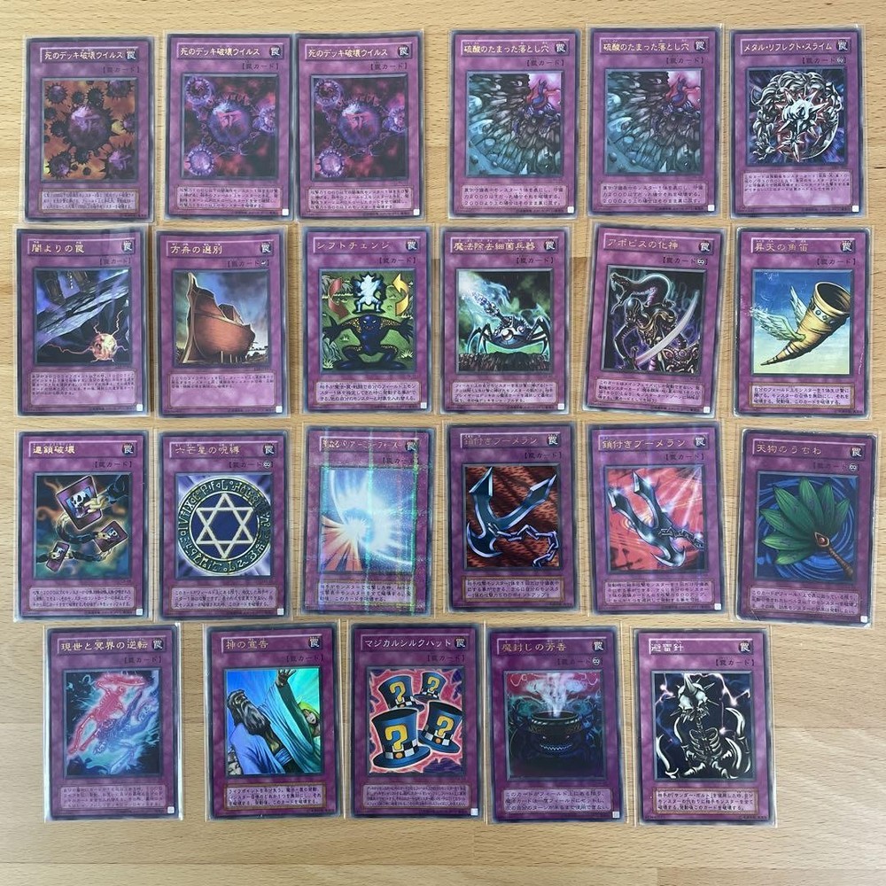 Yu-Gi-Oh! Trap Cards Bulk Set Ultra/Super with Chain Destruction & Virus Japan Key Features This is a collection of Yu-Gi-Oh! OCG Duel Monsters trap cards, including Ultra and Super rarity cards. The set features various trap cards such as "Ascension Horn," "Tengu Fan," "Chain Destruction," early "Deck Destruction Virus," and "Linked Bumerang." Some cards, including "Ascension Horn," "Tengu Fan," "Chain Destruction," "Deck Destruction Virus," and "Linked Bumerang," show signs of wear and scratches. Overall, the remaining cards are in good condition. Item Specifics: - Card Type: Trap Card - Rarity: Ultra, Super - Set: Duel Monsters - Language: Japanese Specifications Brand Bandai Country Japan Franchise Yu-Gi-Oh! TV Show Yu-Gi-Oh! Color Multicolor Country/Region of Manufacture Japan Theme Animation Animation Studio Yu-Gi-Oh! Movie Yu-Gi-Oh! Language Japanese Features Animation Product Description Item Description Condition: Used Our Policy My product is 100% authentic, so feel free to buy it. We will ship the product in the pictures. Please check the photos to make sure this is the item you want to purchase. If there is an item you are looking for that I don't have listed, please message me. If I can find it, I will list it for you. Shipping I have to pack many item and ship them by myself every day, so I have state that I usually ship within 5~ 10 days after the purchase Economy shipping: It takes 1-2 weeks after shipment by Japan post. Expedited shipping: It takes 3-7 days after shipment by FedEx or EMS International Buyers - Please Note: Import duties, taxes, and charges are not included in the item price or shipping cost. These charges are the buyer's responsibility. Please check with your country's customs office to determine what these additional costs will be prior to bidding or buying. If there is an item you are looking for that I don't have listed, please message me. If I can find it, I will list it for you.