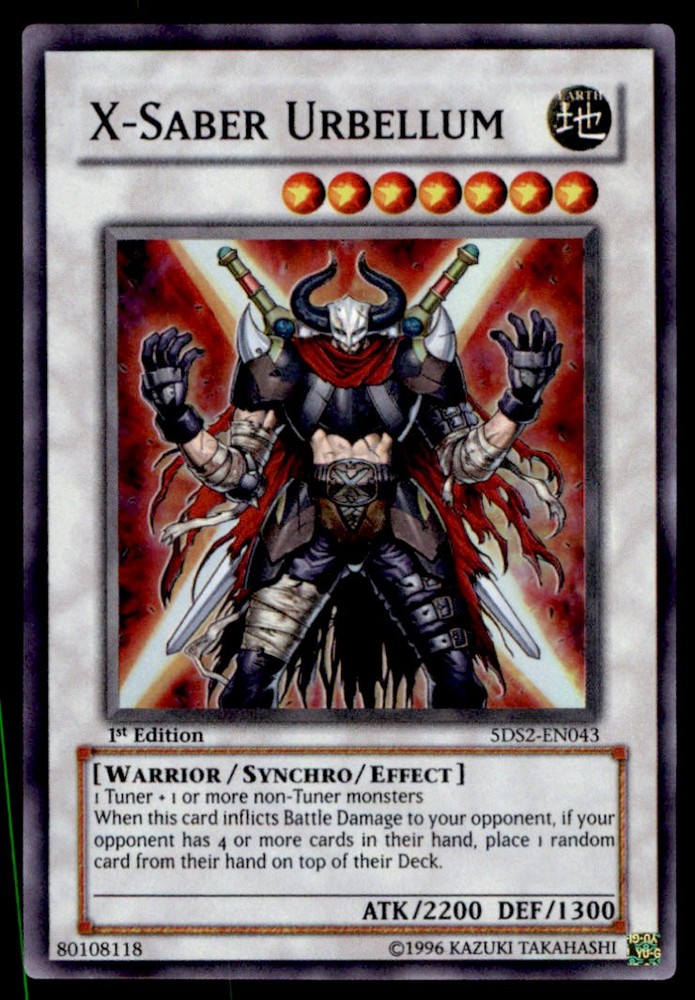 About Me Other Listings Feedback Add to Favorites Contact Me Bluenose Yu-Gi-Oh! X-Saber Urbellum #5DS2-EN043 1st Edition Near Mint No stock photo / These are real scans or pictures Details Description: X-Saber Urbellum Category: Yugioh Year: 1996 Product: Yu-Gi-Oh! Card Number: 5DS2-EN043 Special: 1st Edition Near Mint Dimensions: 3¼" x 2¼" SKU: YU B0004 R03 C (28) Payment Payment for buy it now is required immediately and for auctions it must be paid within 72 hours. Shipping Shipments usually make their way out in 1-2 business days. Returns and Claims Please view listing photo and description prior to purchase of card to make sure the card and condition is right for you! About Us Please keep in mind the following conditions .-------------------------------------------Near Mint: a card that shows very little to no signs of ware or usage such as very little whiting. -------------------------------------------Light Play: A card that shows signs of ware such as but not limited to whiting, slight bend or scratches. -------------------------------------------Heavy Play: A card that shows signs of ware, whiting, bending, creasing, folding or other various issues.-------------------------------------------Damaged: a card in very bad condition can have some or all of the above mentioned condition notes including peeling, stains, writing, etc.-------------------------------------------The photo in ads are the EXACT card you will recieve. Listing By Kronocard trading cards software v2.8.2.3
