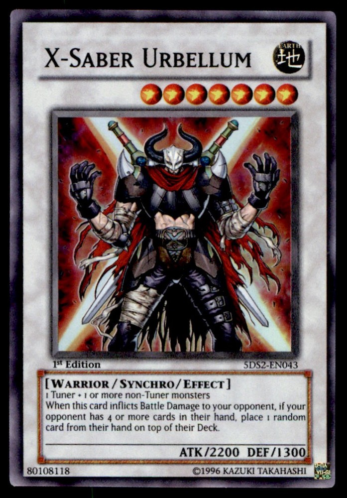 About Me Other Listings Feedback Add to Favorites Contact Me Bluenose Yu-Gi-Oh! X-Saber Urbellum #5DS2-EN043 1st Edition Near Mint No stock photo / These are real scans or pictures Details Description: X-Saber Urbellum Category: Yugioh Year: 1996 Product: Yu-Gi-Oh! Card Number: 5DS2-EN043 Special: 1st Edition Near Mint Dimensions: 3¼" x 2¼" SKU: YU B0004 R03 E (27) Payment Payment for buy it now is required immediately and for auctions it must be paid within 72 hours. Shipping Shipments usually make their way out in 1-2 business days. Returns and Claims Please view listing photo and description prior to purchase of card to make sure the card and condition is right for you! About Us Please keep in mind the following conditions .-------------------------------------------Near Mint: a card that shows very little to no signs of ware or usage such as very little whiting. -------------------------------------------Light Play: A card that shows signs of ware such as but not limited to whiting, slight bend or scratches. -------------------------------------------Heavy Play: A card that shows signs of ware, whiting, bending, creasing, folding or other various issues.-------------------------------------------Damaged: a card in very bad condition can have some or all of the above mentioned condition notes including peeling, stains, writing, etc.-------------------------------------------The photo in ads are the EXACT card you will recieve. Listing By Kronocard trading cards software v2.8.2.3