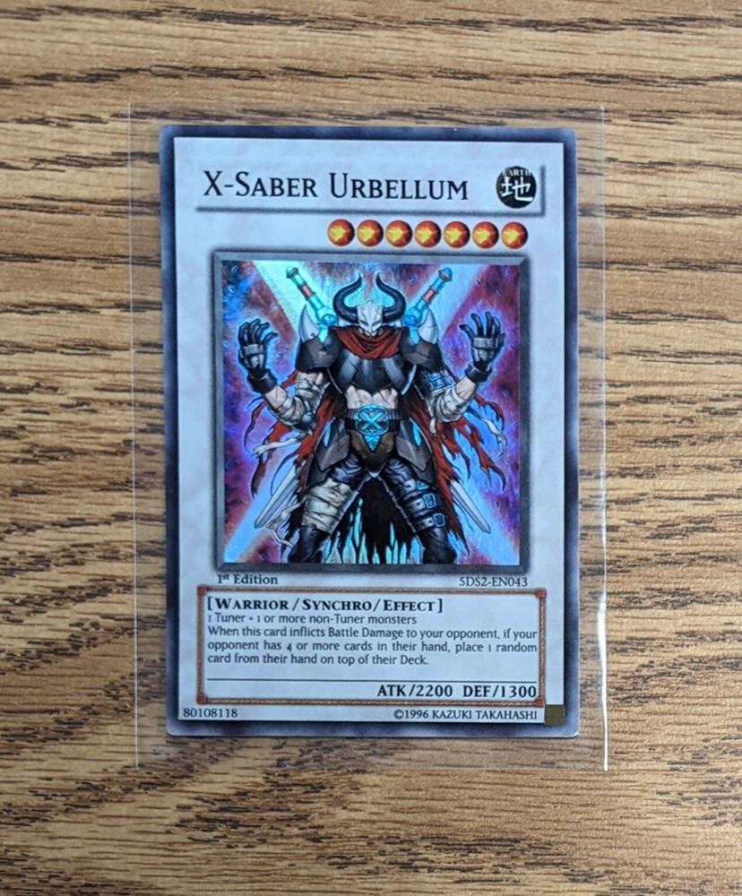 Buying multiple single cards will give you an automatic discount. Buy 2 Cards & Save 5% Buy 3 Cards & Save 8% Buy 5 Cards & Save 10% Buy 8 Cards & Save 15% Buy 10 Cards or more & Save 20% When buying 3 cards or more I will also automatically refund some of the shipping fees. Get your hands on this exclusive Yu-Gi-Oh! 5D's card, X-Saber Urbellum. This Synchro/Effect Monster card boasts an impressive Attack/Power of 2200 and a Defense/Toughness of 1300, making it the ideal addition to any player's deck. The card is in English language, with a holo finish, and is a Super Rare 1st Edition. This card is perfect for those who love to collect rare items, and is a must-have for any Yu-Gi-Oh! TCG fan. Its manufacturer, Konami, ensures that the card is of the highest quality and is a great addition to any collection. Don't miss out on this opportunity to add X-Saber Urbellum to your deck.