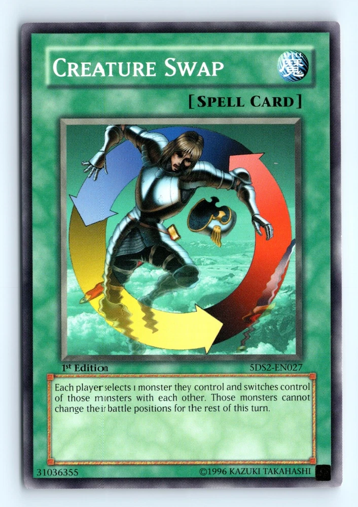 Cards 20$ or Less in Price Will be shipped in a penny sleeve and in a top loader or Semi Rigid card holder by Ebay standard envelope. Please check out the scans for a good look at the condition. This is a example of a 5D's Starter Deck 2009 #5DS2-EN027 Creature Swap . Please check out our other listings for more great cards.