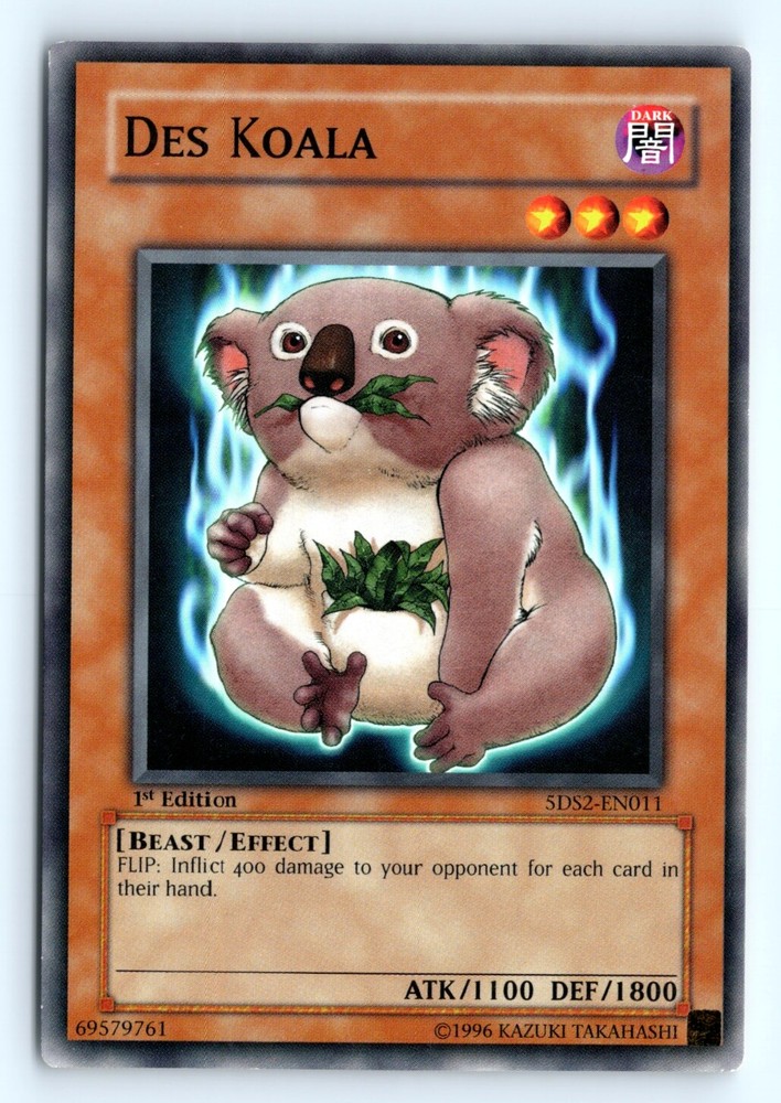 Cards 20$ or Less in Price Will be shipped in a penny sleeve and in a top loader or Semi Rigid card holder by Ebay standard envelope. Please check out the scans for a good look at the condition. This is a example of a 5D's Starter Deck 2009 #5DS2-EN011 Des Koala . Please check out our other listings for more great cards.