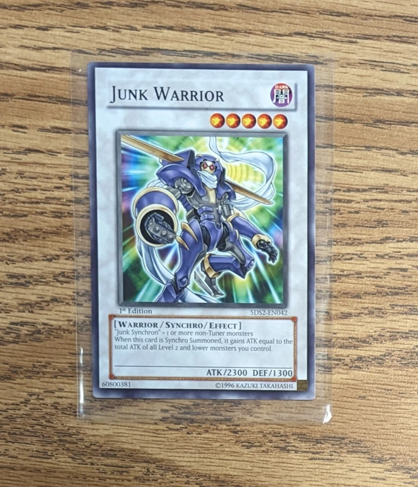 Buying multiple single cards will give you an automatic discount. Buy 2 Cards & Save 5% Buy 3 Cards & Save 8% Buy 5 Cards & Save 10% Buy 8 Cards & Save 15% Buy 10 Cards or more & Save 20% When buying 3 cards or more I will also automatically refund some of the shipping fees. This Yu-Gi-Oh card features Junk Warrior from the 5D's Starter Deck 2009. With card number 5DS2-EN042, it is a collectible card game item perfect for fans of the franchise. The card is in LP (lightly played) condition and is a great addition to any collection. Whether you're looking to complete your set or just want to add a cool card to your collection, Junk Warrior is an excellent choice. Get this starter deck card today and add a piece of Yu-Gi-Oh history to your collection.