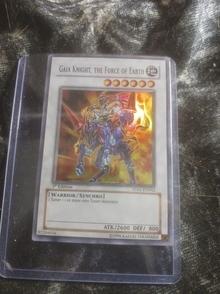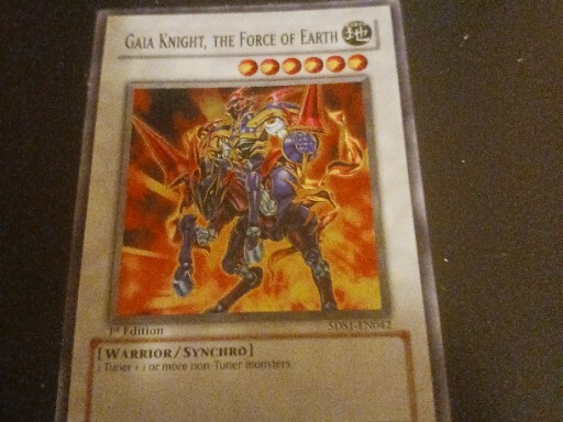 This Yu-Gi-Oh! TCG card features the powerful Gaia Knight, the Force of Earth, a Synchro card with 2600 ATK and 800 DEF. It belongs to the Earth attribute and is classified as a Warrior monster. This card is also a Ultra Rare card with 1st Edition features and is numbered 5DS1-EN042.