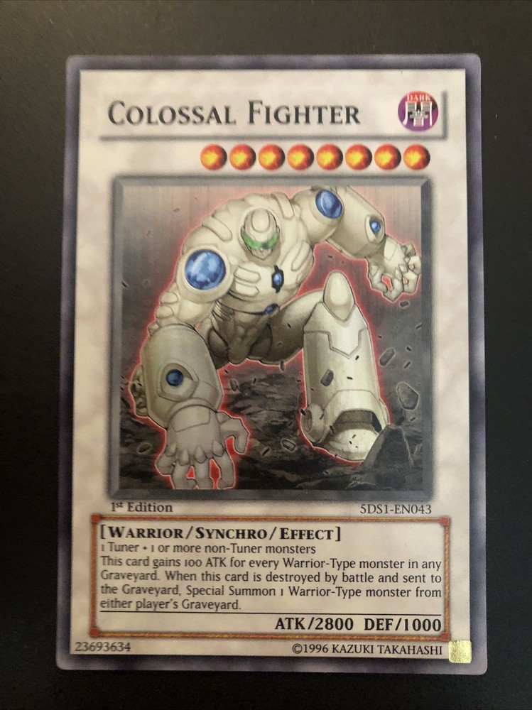 You are purchasing one copy of Yugioh 1st Edition Colossal Fighter 5DS1-EN043 Super Rare LP. Card will be shipped 2-3 days after payment is made...