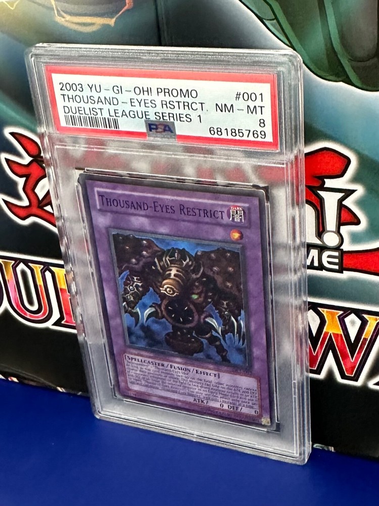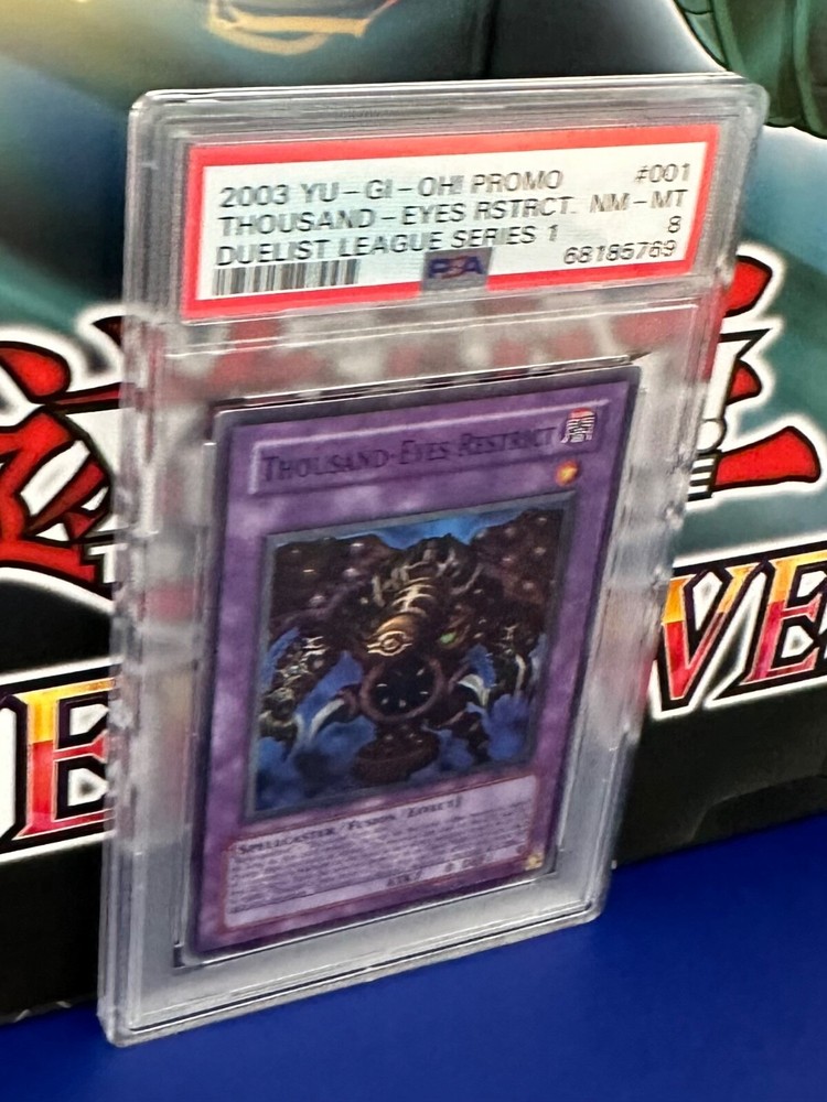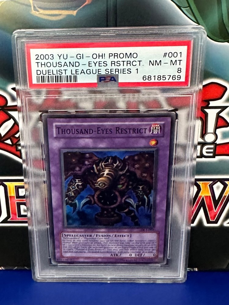 Yugioh 2003 Thousand-Eyes Restrict DL1-001 Super Rare PSA 8! Ships in protective in box for damage free delivery. Thanks for viewing my item.