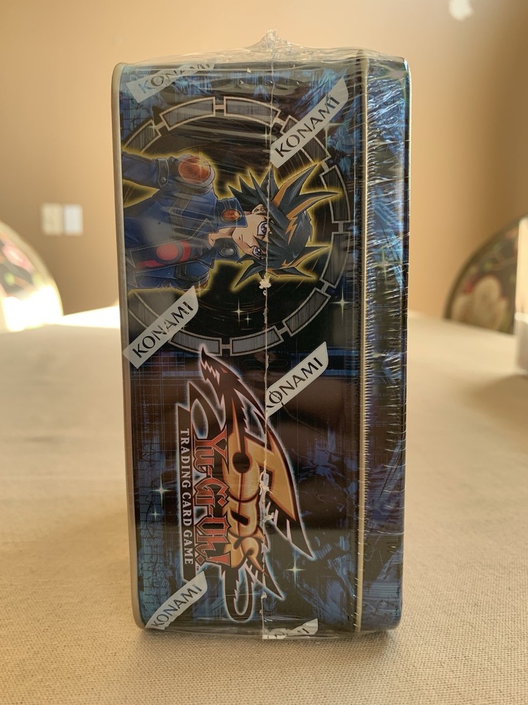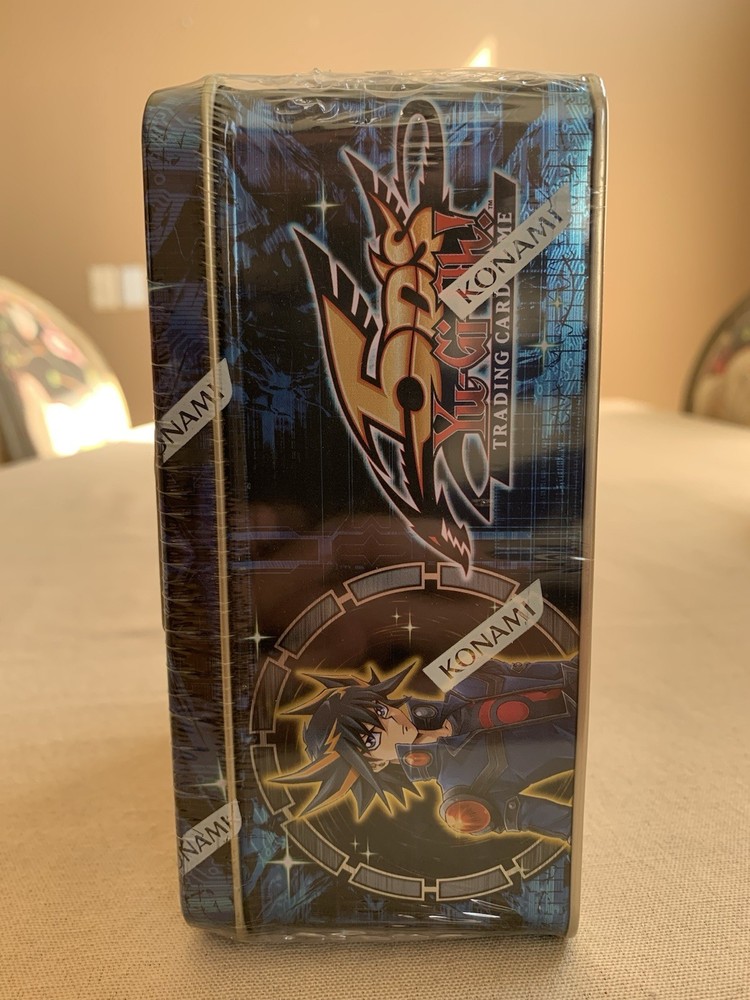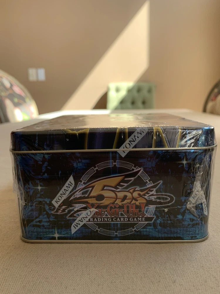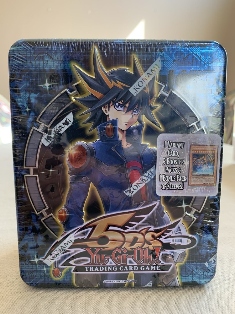 2009 5D’s Yusei Fudo Tin. This item is factory sealed and unopened. Please review photos for condition! Shipping to US only. Orders will be shipped within 2 business days of purchase. All tin sales include a free tin sleeve protector that will arrive with the package, great for display or storage! Thank you for visiting out my listing, and please check my other items!