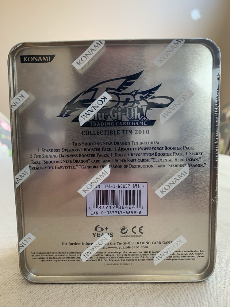 2010 5D’s Shooting Star Dragon Tin. This item is factory sealed and unopened. Please review photos for condition! Shipping to US only. Orders will be shipped within 2 business days of purchase. All tin sales include a free tin sleeve protector that will arrive with the package, great for display or storage! Thank you for visiting out my listing, and please check my other items!