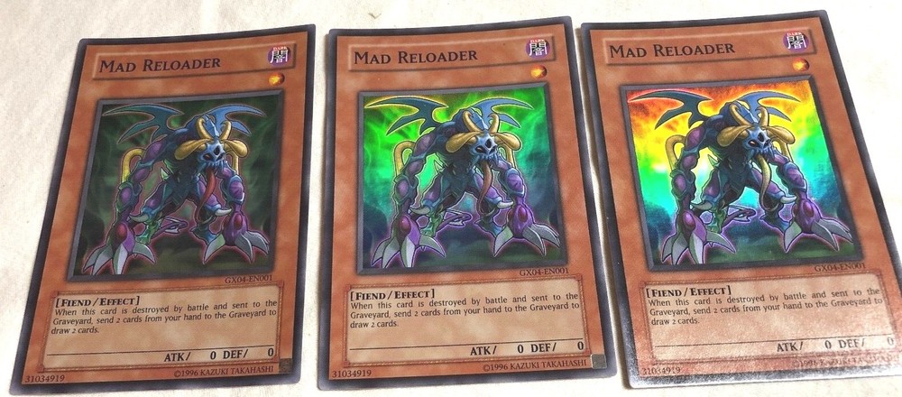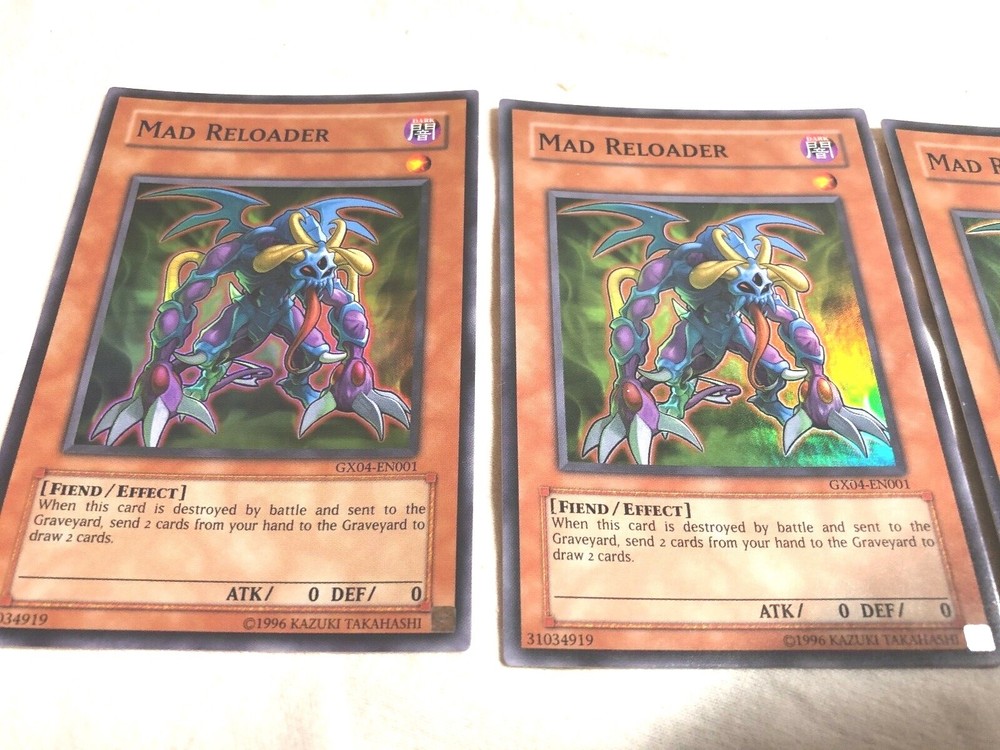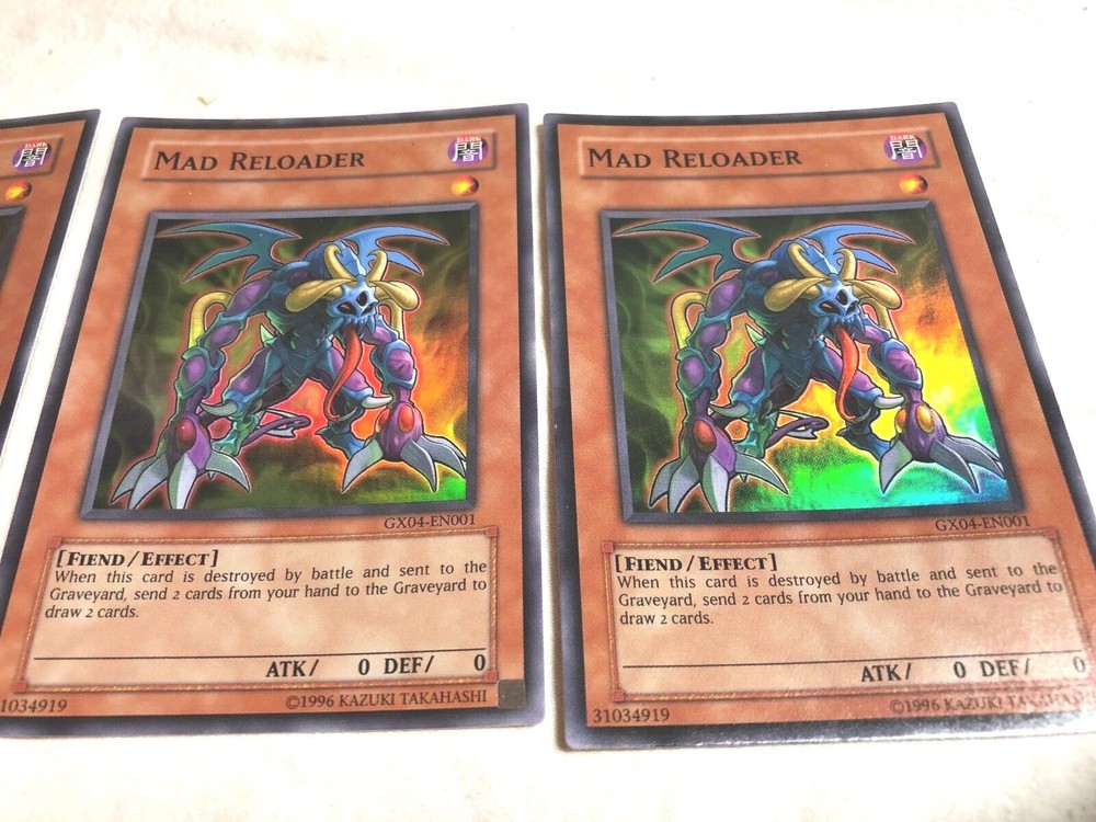 Today I have a 3x Yugioh Mad Reloader GX04-EN001 Super Rare cards. All three are in good condition with little to no noticeable wear to them. Enjoy Payment is expected within 2-3 days of purchase or an unpaid item case will be opened. Thank you for understanding.