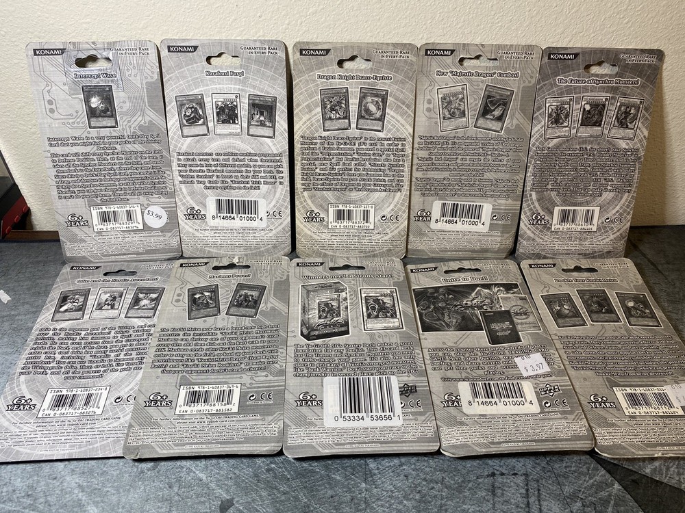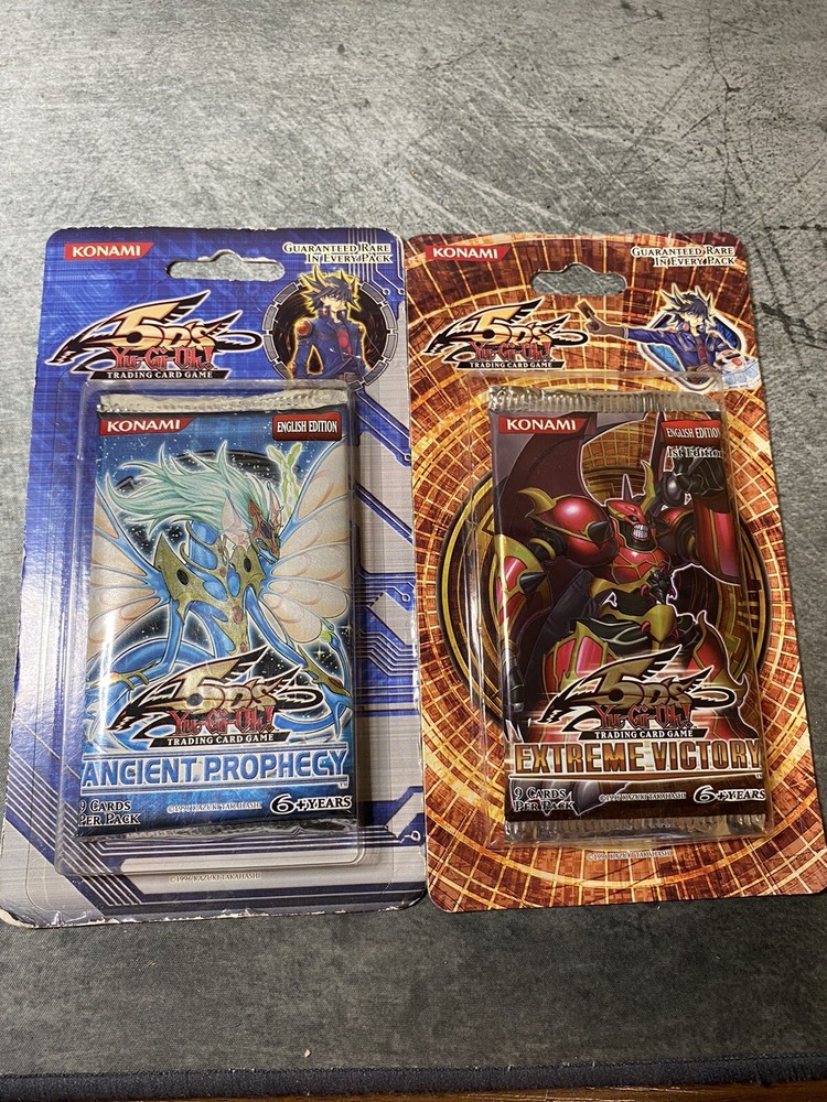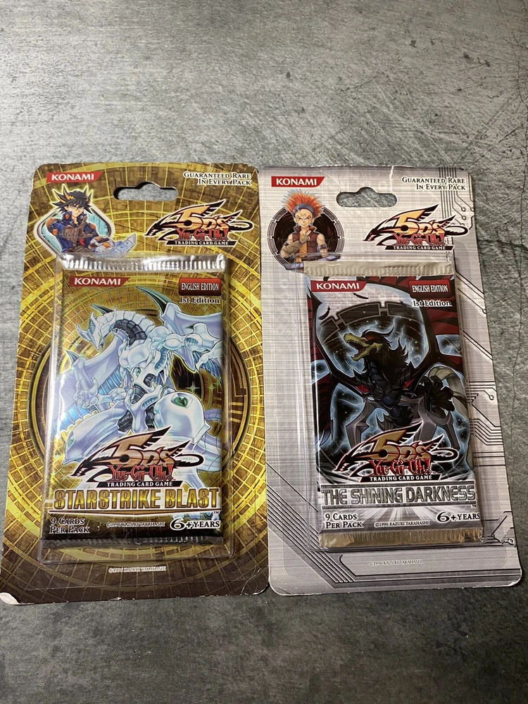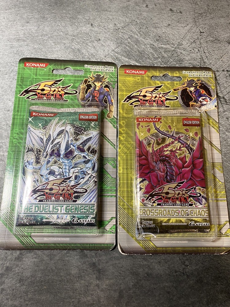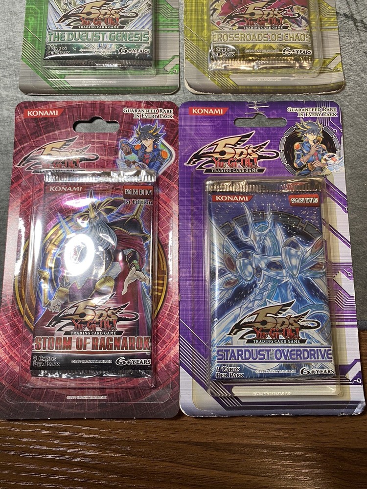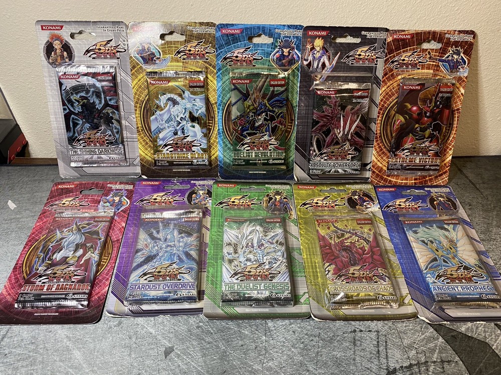 Yugioh 5D’S LOT OF 10 Sealed Blister Packs! Almost All 5Ds Sets! 1st Edition!. For sale is this amazing collection of sealed 5Ds blister booster packs as shown! The sets included are 1st edition where possible, as there are no 1st edition blisters created for ancient prophecy, crossroads of chaos, the duelist genesis, and stardust overdrive. This set of blisters is perfect for someone looking for these very rare blisters, as there are few to none of most of these on eBay and elsewhere, and it took me very long to find most of these. The sets included are - 1st Edition Duelist Revolution DREV - 1st Edition The Shining Darkness TSHD - 1st Edition Starstrike Blast STBL - 1st Edition Absolute Powerforce ABPF - 1st Edition Extreme Victory EXVC - 1st Edition Storm of Ragnarok STOR - Unlimited Stardust Overdrive SOVR - Unlimited The Duelist Genesis TDGS - Unlimited Ancient Prophecy ANPR - Unlimited Crossroads of Chaos CSOC The sets missing to have all of what I consider the main 5Ds sets are Raging Battle (which I have separate blisters in very nice condition listed separately on my page), and Crimson Crisis, which I have not been able to locate. All of these blisters have some wear, some more than others as shown in the photos, but the seals on the blisters and packs are sealed and unopened. Not enough room for detailed pictures of all blisters, so if you are a serious buyer you can ask for more pictures, but know most have creases, tears, etc. Let me know if you have any other questions! Most blisters will also be listed separately, but for higher prices than as a lot since I’d rather sell rarer blisters as a lot than individually unless it’s for the right price. No returns on these blisters so make sure you’re aware of conditions before purchasing!