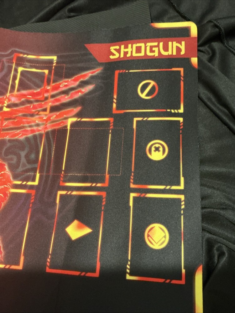 The Team Shogun Official Samurai Sigil Play Mat in Big Shogun Edition is a standard playmat designed for the Yu-Gi-Oh! trading card game. Made of rubber material, it features a non-slip backing, round corners, and is extra thick for durability. The playmat showcases a purple color scheme with artwork by the illustrator, founder, and leader of team shogun Yami/Yami Shogun.Making it a noticeably visually appealing accessory for Yu-Gi-Oh! fans and members of the Shogun Nation and Community This playmat can also double as a mousepad, providing versatility for gamers. Designed by me Shogun Yami