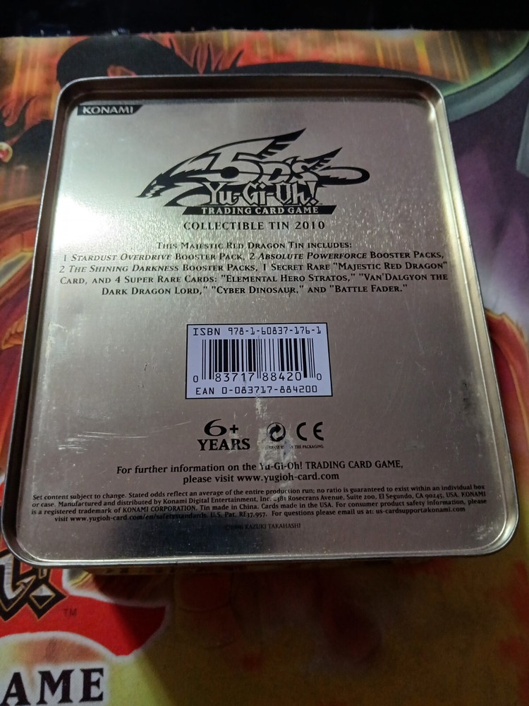 Majestic Red Dragon tin Please see images for condition. If a large amount of cards are purchased at once, the cards may be sent in a safe and secure container instead. If payment is not made within 72 hours of selecting a card(s), the item will no longer be entitled to you, unless you contact us asking for more time. We do not cancel orders because a card has changed in price. Sorry, we do not provide tracking for orders under $6 We do our best at being 100% honest and fair with the cards' conditions, any questions you may have, and the prices of the cards, so please be honest buyers. If you have any questions or concerns, please let us know, and we will be glad to assist. Check out the other cards we have listed! Thank you in advance, and happy dueling!