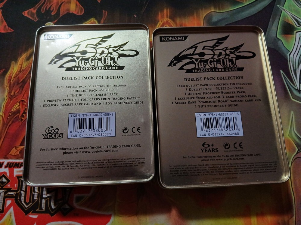X2 Yusei Fudo Tins Please see images for condition. If a large amount of cards are purchased at once, the cards may be sent in a safe and secure container instead. If payment is not made within 72 hours of selecting a card(s), the item will no longer be entitled to you, unless you contact us asking for more time. We do not cancel orders because a card has changed in price. Sorry, we do not provide tracking for orders under $6 We do our best at being 100% honest and fair with the cards' conditions, any questions you may have, and the prices of the cards, so please be honest buyers. If you have any questions or concerns, please let us know, and we will be glad to assist. Check out the other cards we have listed! Thank you in advance, and happy dueling!