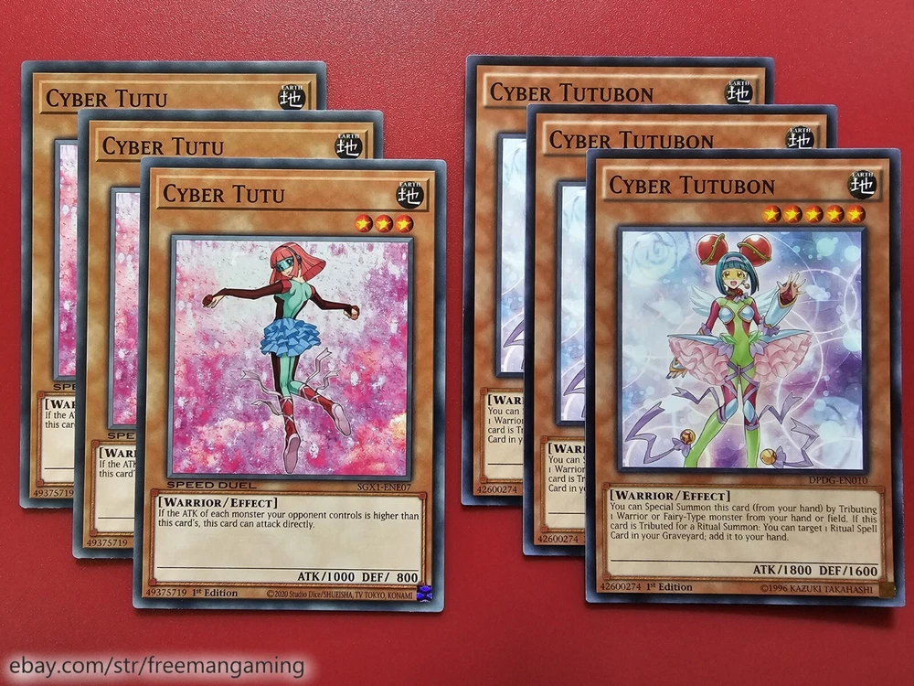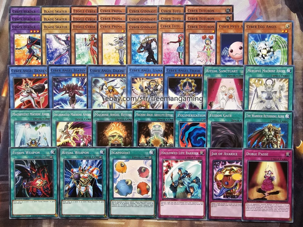 Item Description All cards are in NM Near Mint Condition. All cards included have been used by Alexis Rhodes in the TV Show and official Konami Yugioh Video Games. Monsters x25 - 3x Blade Skater 3x Etoile Cyber 3x Cyber Prima 3x Cyber Gymnast 3x Cyber Tutu 3x Cyber Tutubon 1x Cyber Petit Angel 1x Cyber Egg Angel 1x Cyber Angel Benten 1x Cyber Angel Idaten 1x Cyber Angel Dakini 1x Cyber Angel Izana 1x Cyber Angel Vrash Spells x12 - 1x Ritual Sanctuary 1x Merciful Machine Angel 1x Magnificent Machine Angel 1x Incarnated Machine Angel 1x Machine Angel Ritual 1x Machine Angel Absolute Ritual 1x Polymerization 1x Fusion Gate 1x The Warrior Returning Alive 1x Fusion Weapon 1x Ritual Weapon 1x Scapegoat Traps x3 - 1x Hallowed Life Barrier 1x Jar of Avarice 1x Doble Passe Extra Deck x3 - 3x Cyber Blader All items are in mint/near mint condition unless otherwise specified in the title or description. This listing is for the items named in the title and pictured here. What you see in the picture is what you will receive.