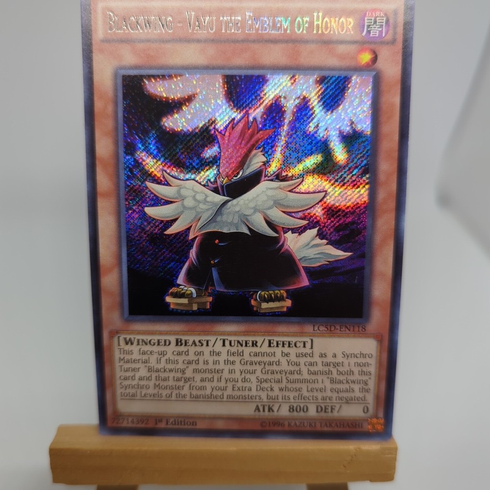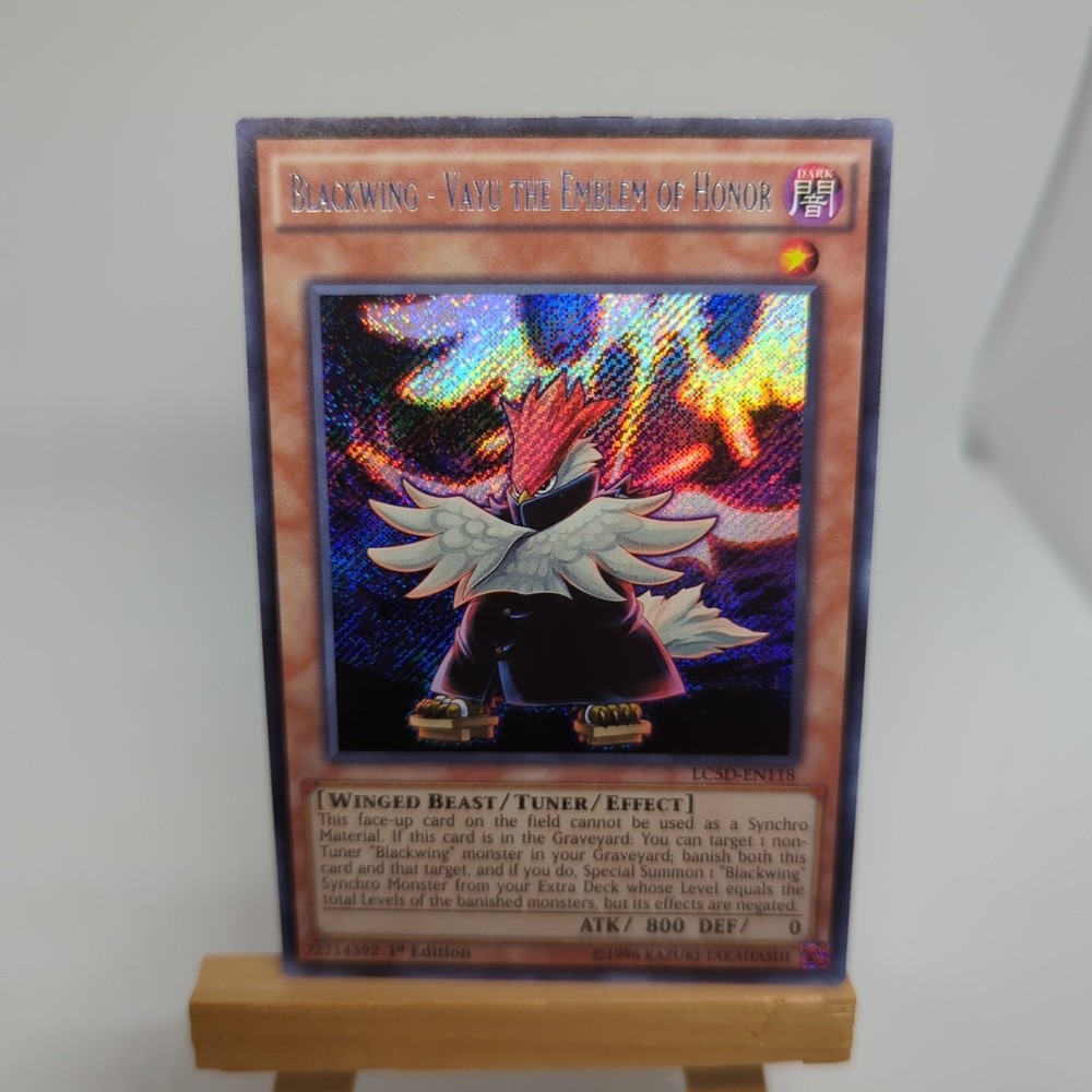 This Blackwing - Vayu card is a must-have for collectors! The Secret Rare 1st Edition looks amazing, just like in the pictures. Seller is super responsive and offers great shipping options. Fast delivery and excellent packaging—highly recommend this seller!
