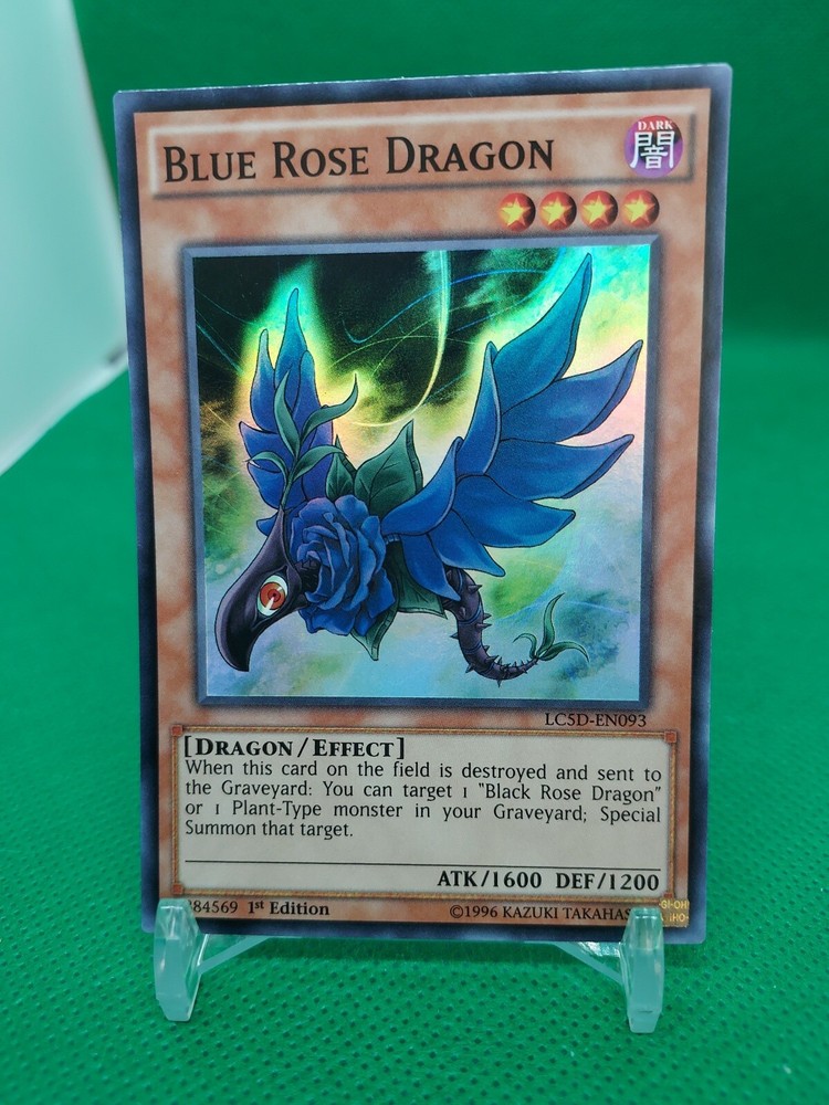 This super rare 1st edition Yu-Gi-Oh! TCG Blue Rose Dragon card is a must-have for any collector. The card features stunning artwork and is in near mint condition. The rarity of this card is undeniable and it would make a great addition to any collection. The card is in English and manufactured by Konami in Belgium. Don't miss your chance to own this amazing card!