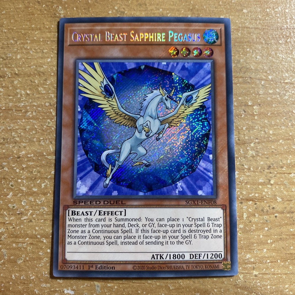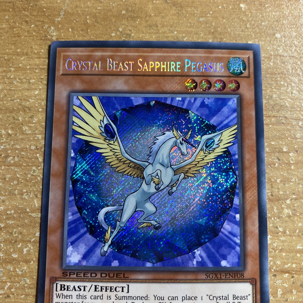 🔥Yugioh CRYSTAL BEAST SAPPHIRE PEGASUS SECRET RARE SGX1-ENF08 SPEED DUEL GX NM This item will be sent in a plastic sleeve/deck protector sleeve and in a toploader for maximum protection. Shipping is FREE! Payment is due immediately. The faster the payment the faster i'll ship out. Questions or comments?? Feel free to contact me. I'll get back to you within 24 hours. Check out my eBay store for more Yugioh items!