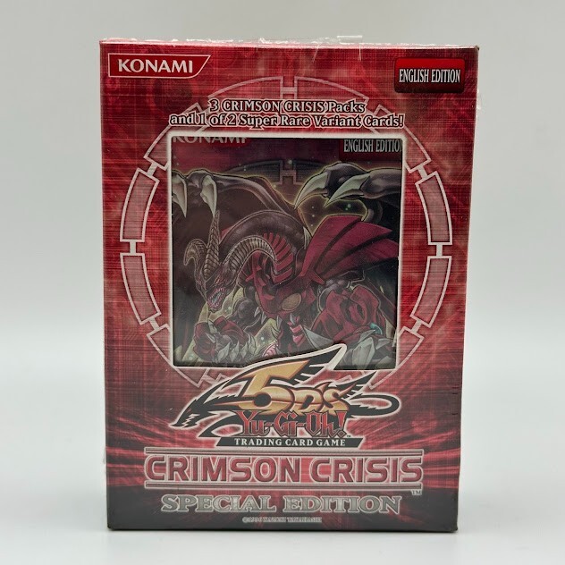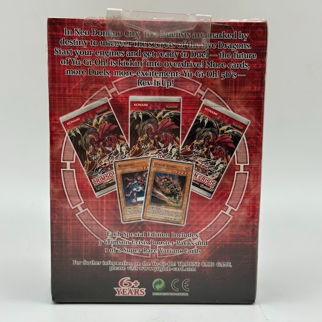 Soar into Synchro supremacy with this Yu-Gi-Oh! Crimson Crisis Special Edition Mini Booster Box , a factory-sealed treasure featuring powerful Assault Mode monsters, iconic Synchro support, and two variant promo cards per Special Edition. Originally released during the 5Dβs era, this collectible box is perfect for sealed collectors, duelists, and fans of Red Dragon Archfiend/Assault Mode . π¦ Product Details : Product Name : Crimson Crisis Special Edition Edition : English Release Year : 2009 Condition : Factory Sealed Mini Booster Box β Authentic Konami Product Box Contents : Includes multiple Special Edition units inside the Mini Box Each Special Edition contains: 3 Crimson Crisis Booster Packs (9 cards each) 1 of 2 Promo Cards (typically Necro Gardna or Goblin Zombie ) Total of 9 cards per pack x 3 = 27 cards per SE unit, plus promo π Key Cards You Might Pull : π₯ Assault Mode & Synchro Powerhouses : Red Dragon Archfiend/Assault Mode Turbo Warrior Assault Beast Armed Wing Blackwing β Gale the Whirlwind π§ Sought-After Promos : Goblin Zombie Necro Gardna π― Why This Box Is Special : β¨ Special Edition Format : Great value with bonus promos and multiple booster packs π Synchro-Era Classic : Key support for Blackwings, Assault Modes, and 5D's decks π Factory Sealed Display Box : Ideal for collectors, display, or cracking packs π Rising Collectibility : Out of print and getting harder to find sealed π¬ Shipping & Handling : π¦ Ships safely in a crush-resistant box with protective padding π 100% Factory Sealed β Verified Konami Product π§Ό Smoke-free, climate-controlled storage SEO Highlight : Yu-Gi-Oh! Crimson Crisis Special Edition Mini Booster Box β Factory Sealed β 5D's Era β English β Red Dragon Archfiend β Synchro β Blackwing β Konami Click βAdd to Cartβ now and charge into the Crimson Crisisβwill you unlock powerful Synchros or hard-to-find promos? π₯ππ‘οΈ
