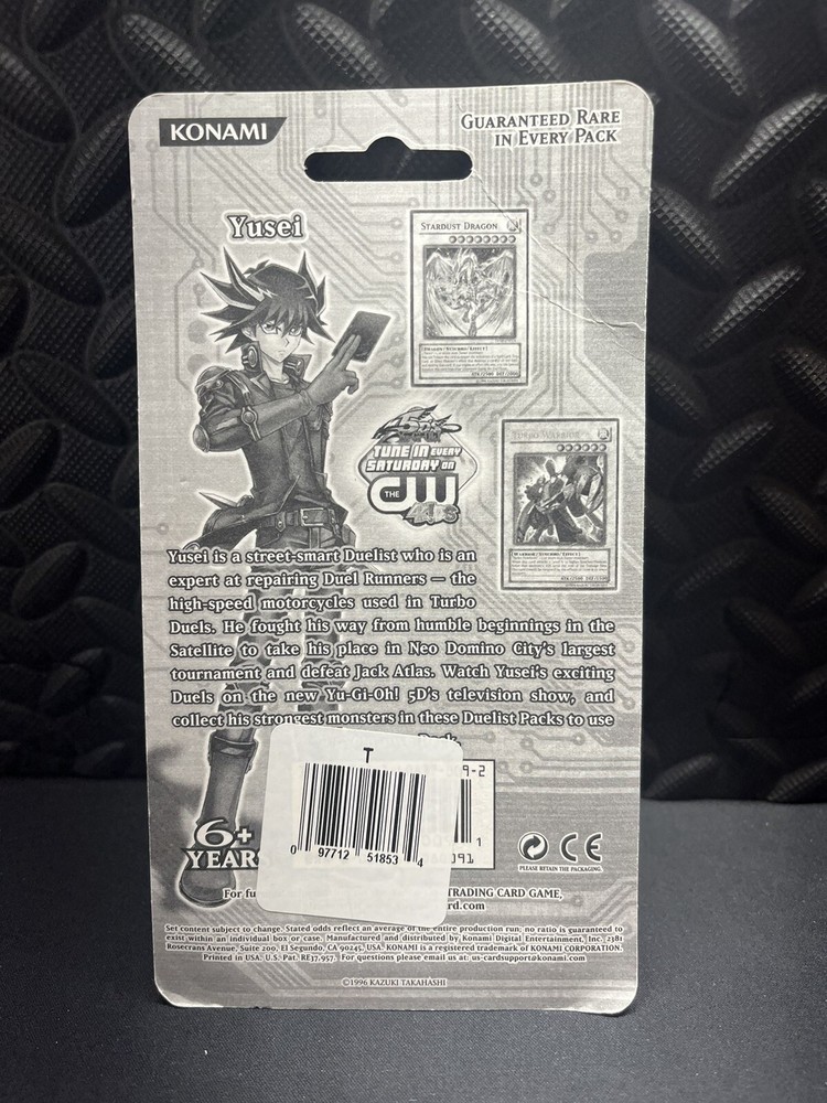 The product is a Yu-Gi-Oh! TCG Duelist Pack Yusei 5Ds 2 Booster Pack Blister Limited Edition. Rare Sealed Blister Pack from 5Ds era | Yugioh Duelist Pack Yusei 5Ds 2 Booster Pack Blister Limited Editi...