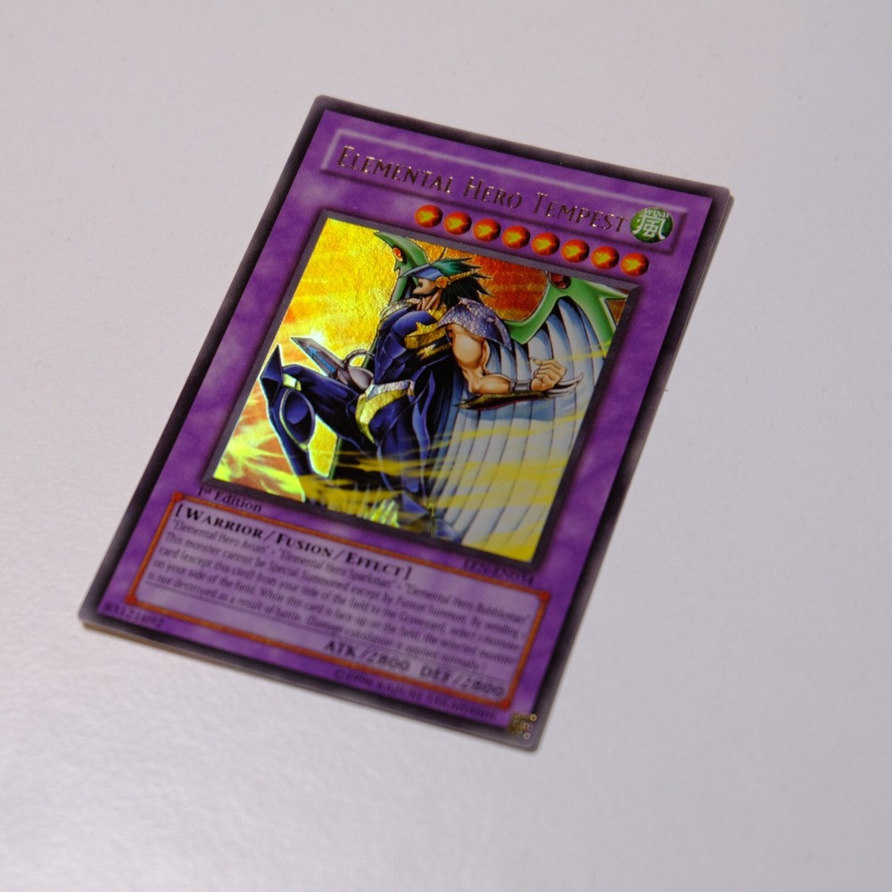 Yu-Gi-Oh! GX Elemental Hero Tempest - EEN-EN034 - Ultra Rare - 1st Edition - Near Mint - 2005 Near Mint copy of Elemental Hero Tempest from the 2005 Enemy of Justice (EEN) set, Ultra Rare, 1st Edition (EEN-EN034). This is a must-have for Elemental Hero fans and collectors. This card has never been touched, kept in a sleeve and folder, and never used in play. ✨ Condition: Near Mint (Never Played, Never Touched!) ✨ Language: English ✨ Edition: 1st Edition ✨ Rarity: Ultra Rare ✨ Set: Enemy of Justice (EEN) ✨ Year: 2005 💎 Card Condition Details: ✔️ Carefully stored in a sleeve and binder ✔️ No creases, bends, or scratches ✔️ Sharp edges, vibrant colors, and a clean surface Message me without any hesitation before purchase for postage enquiries or card enquires or anything. Get your game on! 😉🫵