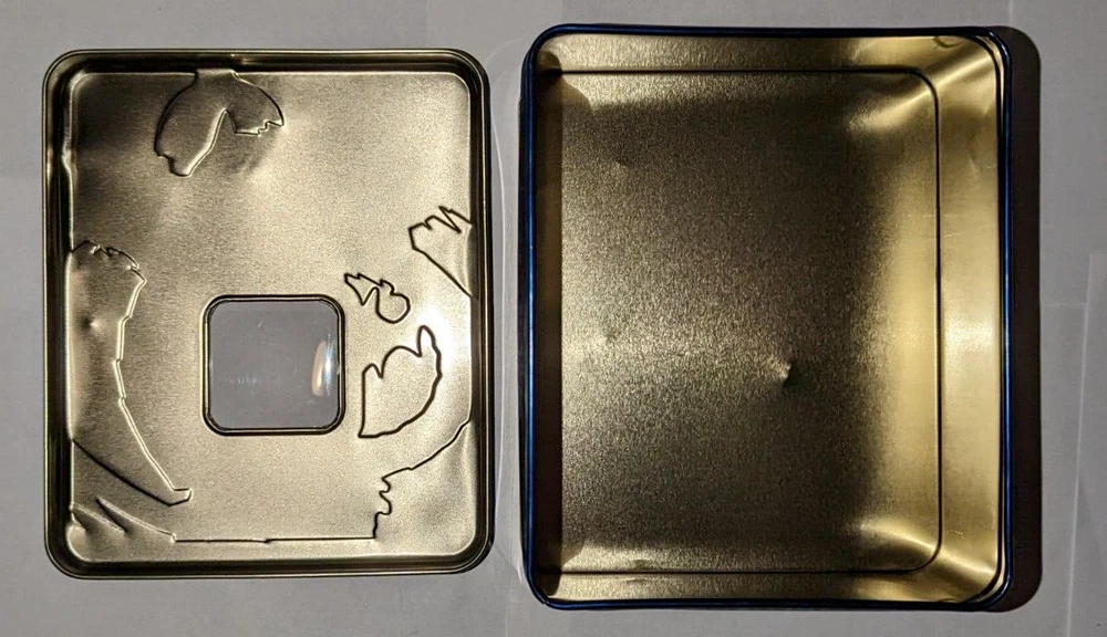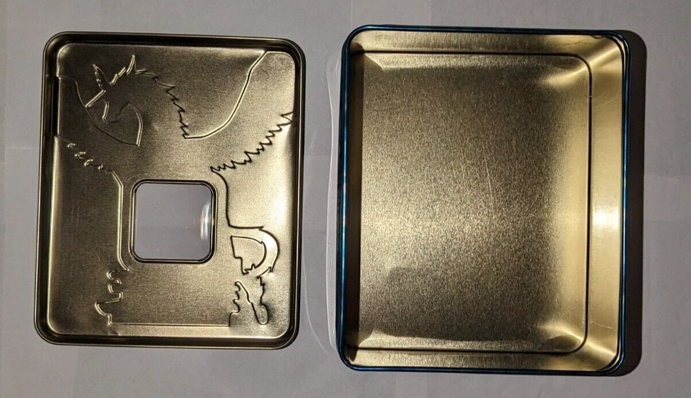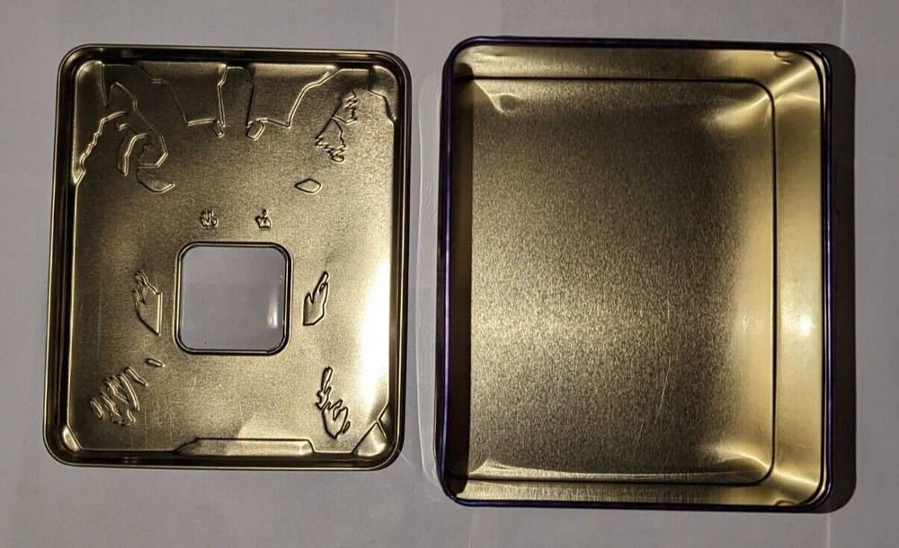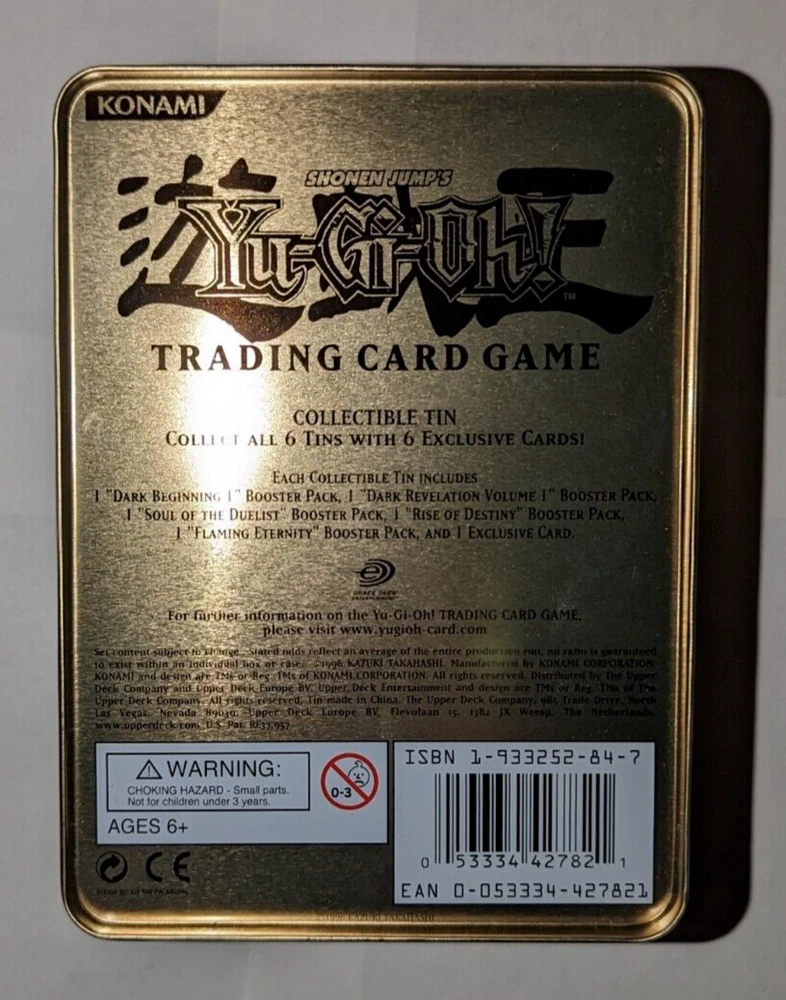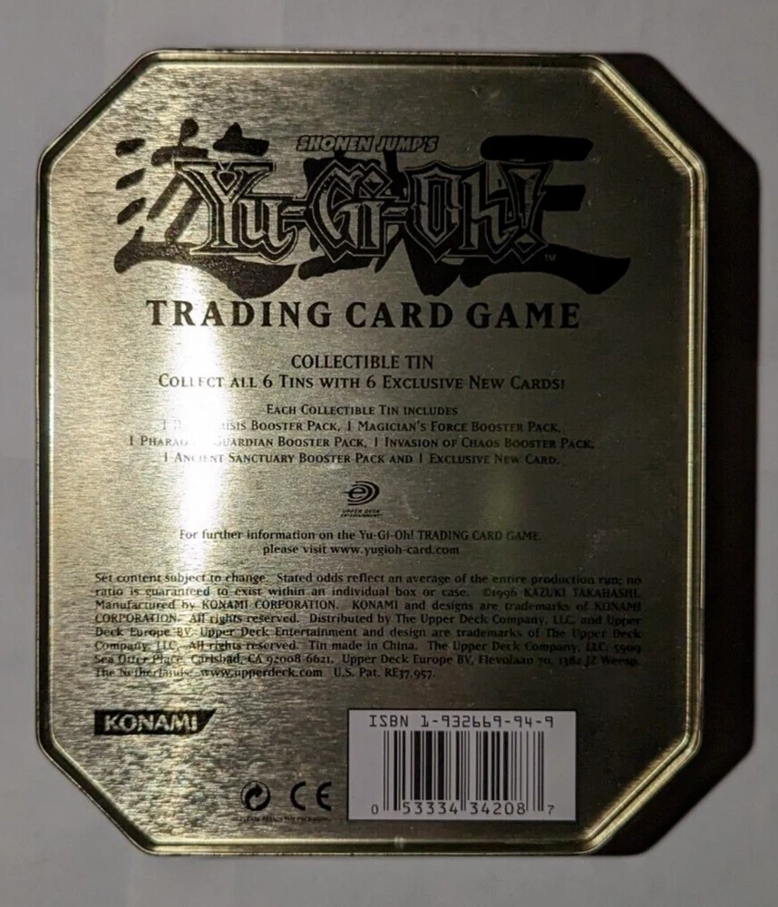 Yugioh Empty Tin Lot: All tins are in good condition! Elemental Hero Grand Neos tin has a scuff/scratch inside tin in Images 3 & 4. Rainbow Dragon tin has some small dents on the back side of tin in images 9 & 10. Uria tin has some bends on the front facing tin cover in images 16 & 17. The light brown cover of the tin in images 22 & 23 is very lightly dented. These items come from a smoke-free environment and I am the original owner of them. USA buyers only! Make sure to check out my other items and products I have for sale. Thank you!