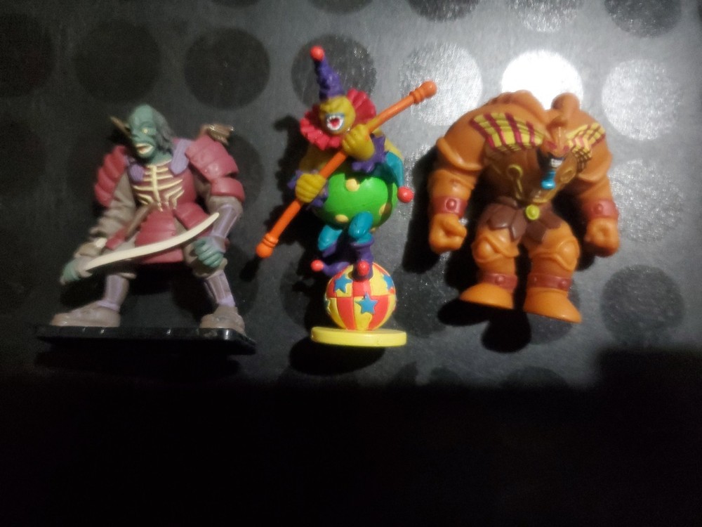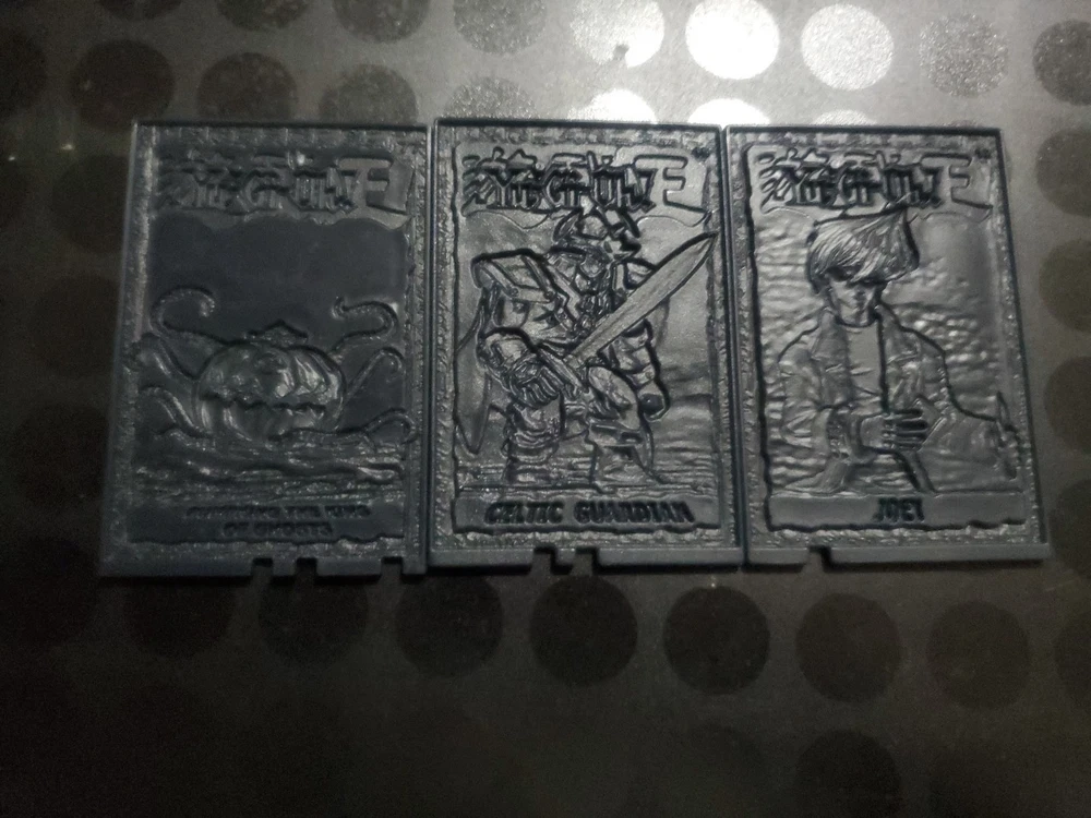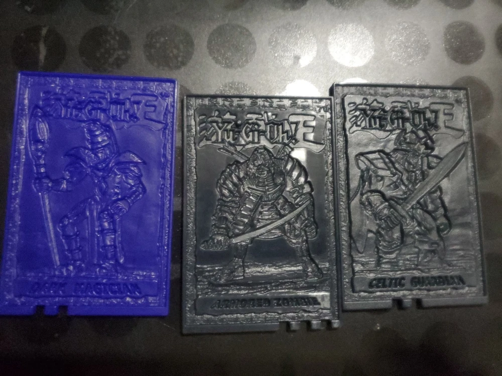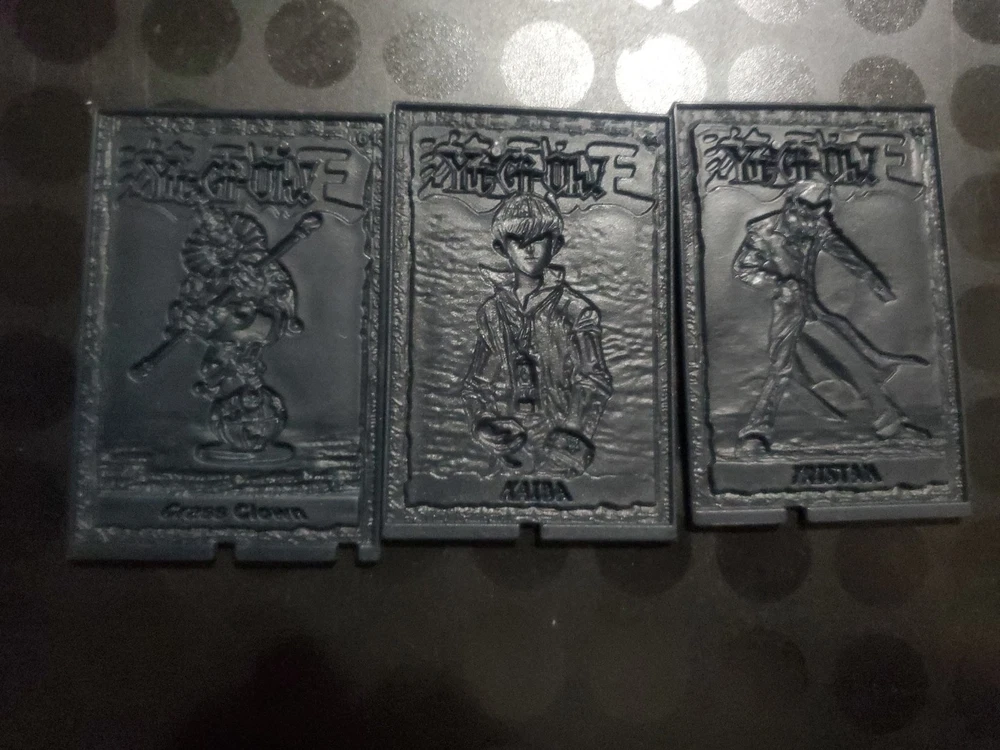 These 2" mini figures of Exodia, Crass Clown, and Armored Zombie from Yu-Gi-Oh! are vintage collectibles from the 1990s. Made of plastic by Mattel, they represent iconic characters from the popular TV show and franchise. The figures are in good condition and are suitable for children aged 4 and up. With a nostalgic theme and without packaging, these mini figures are a must-have for any Yu-Gi-Oh! fan looking to add to their collection. Obviously played with, some scuffs but nothing terrible. No broken pieces. Pictures are of the actual products you will receive, so look them over. Plastic cards are of characters and have a little tab so you can attach the figures to