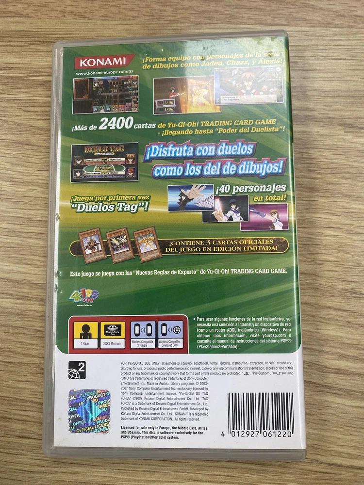 Yugioh game for psp. In very good overall condition with some minimal wear. Complete with case , cover , manual and the 3 cards that originally came with the game. Tested and working Region free...