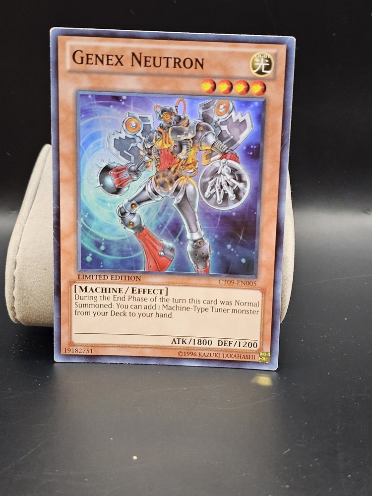 This Yugioh card features the powerful Genex Neutron - CT09-EN005- monster in holo finish. It is a limited edition and super rare card from the tin collection sets. Card is in near mint condition as shown in the photographs. Please feel free to message with any questions. Card will ship out promptly and all prices are negotiable. =)