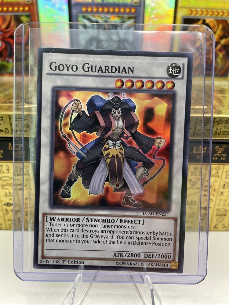 This Yugioh card is a must-have for any collector or player. With its Super Rare status and 1st Edition feature, the Goyo Guardian LC5D-EN231 card is a valuable addition to any collection. The card name is prominently displayed and the game is undoubtedly Yugioh. This item is perfect for those who are passionate about Collectible Card Games and will make a great addition to their collection.