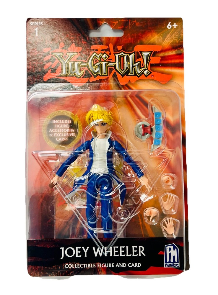 The Yugioh Joey Wheeler Collectible Figure & Card is a highly detailed action figure depicting the popular character from the Yu-Gi-Oh trading card game. This collectible item is perfect for fans of the series and adds a unique piece to any action figure collection. The included card allows for further play and customization, making it a must-have for fans of Joey Wheeler and the Yu-Gi-Oh franchise. Shelf wear on back.