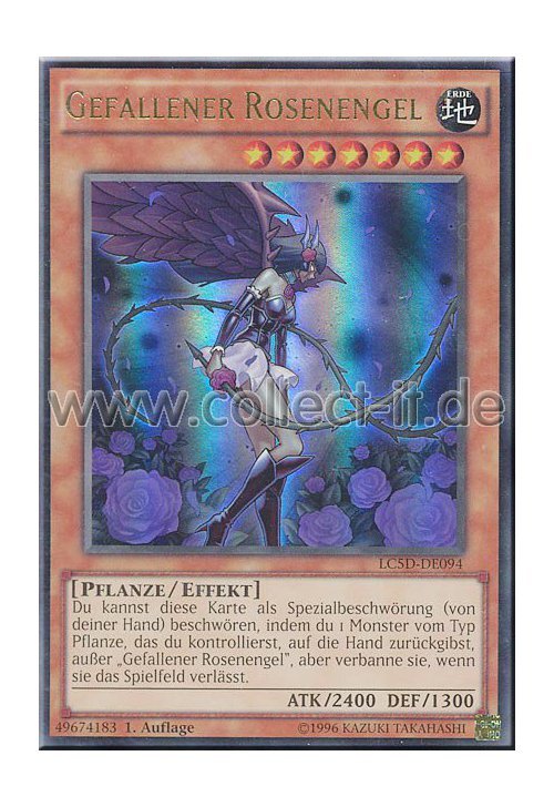 Yugioh - LC5D-DE094 Gefallener Rosenengel - 1. Auflage Boosterfrisch - 1. Auflage - Ultra Rare International Shipping Please note that we are delivering from Germany. Depending on the country you are living in, the delivery may take up to 6 weeks. Internationaler Versand Bitte beachten Sie, dass wir von Deutschland aus verschicken. Abhängig davon, an welches Land die Lieferung erfolgt, kann die Dauer der Lieferung bis zu 6 Wochen betragen.