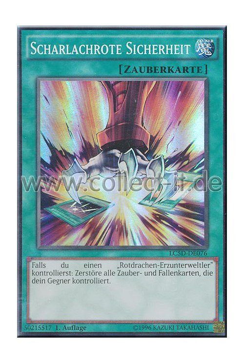 Yugioh LC5D-DE076 Scharlachrote Sicherheit - 1. Auflage Boosterfrisch - 1. Auflage - Super Rare International Shipping Please note that we are delivering from Germany. Depending on the country you are living in, the delivery may take up to 6 weeks. Internationaler Versand Bitte beachten Sie, dass wir von Deutschland aus verschicken. Abhängig davon, an welches Land die Lieferung erfolgt, kann die Dauer der Lieferung bis zu 6 Wochen betragen.