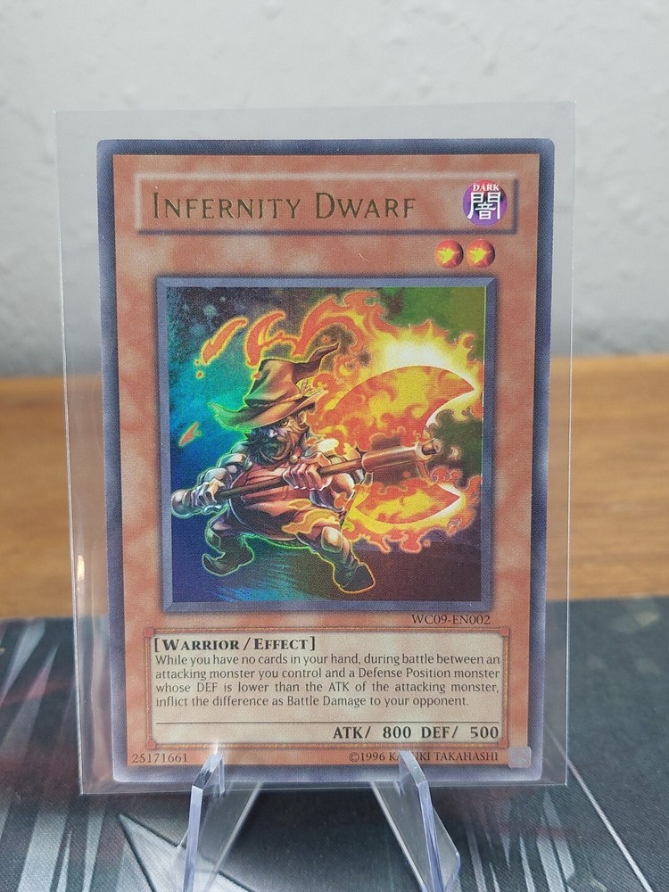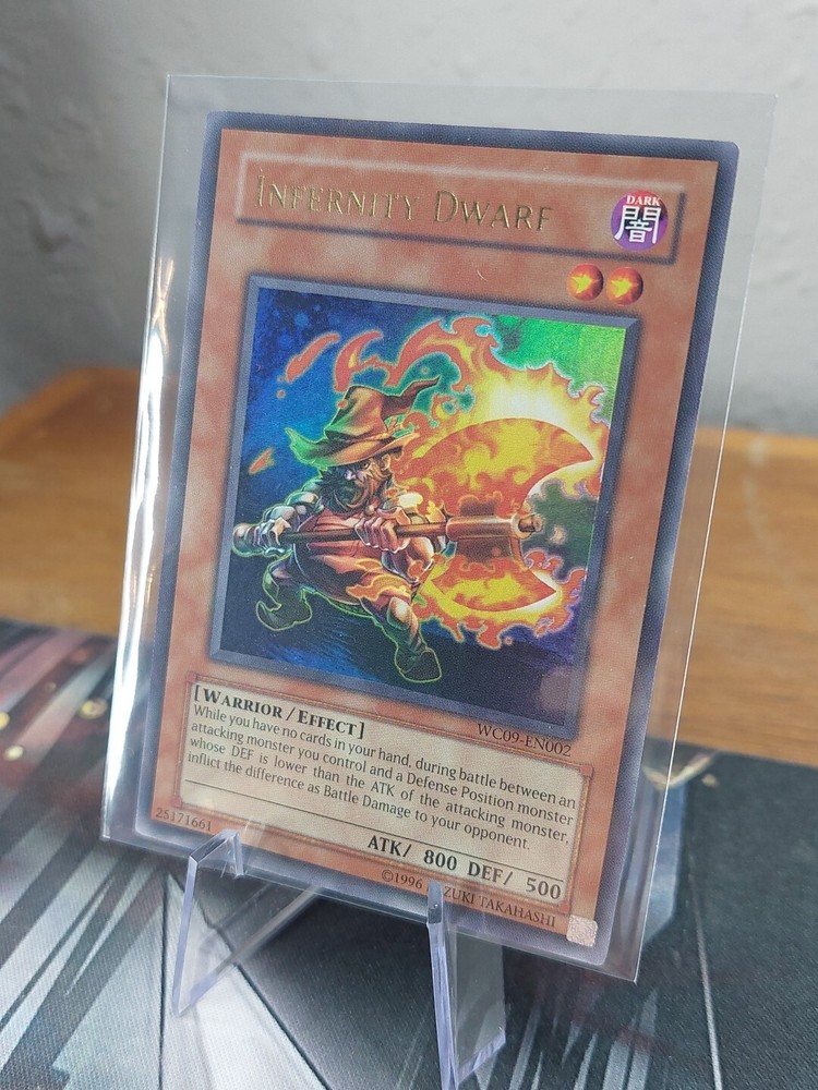 This limited edition ultra rare Infernity Dwarf card from the 5D's Stardust Accelerator World Championship 2009 set is a must-have for any Yu-Gi-Oh! collector. The card features a Light attribute and is named WC09-EN002. It is perfect for players who want to add a unique and rare card to their collection. The card is ideal for those who enjoy collectible card games and is a great addition to any CCG individual card collection. It is a perfect fit for players who want to showcase their skills and knowledge of the game. Get your hands on this highly coveted card and add it to your collection today!