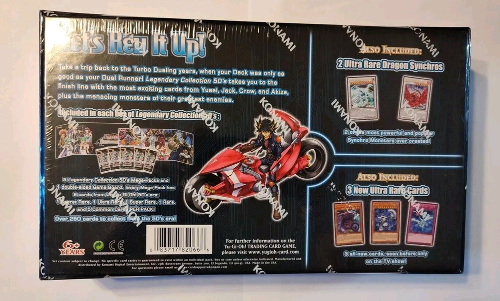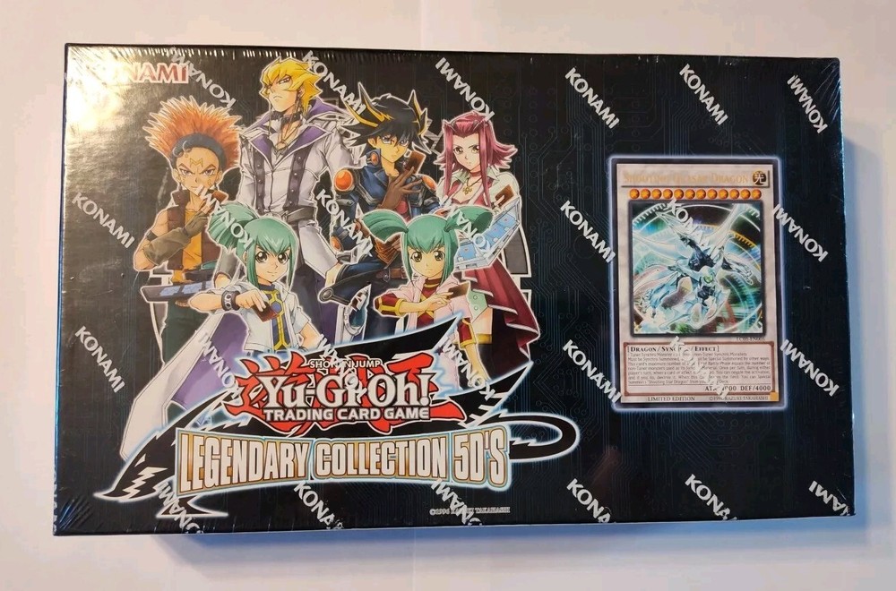 Available for purchase is a factory sealed yugioh legendary collection 5d's 1st edition box. Included are five (5) mega packs, 1 double sided game board, and a sealed promo card pack. I do combine shipping on multiple purchases.