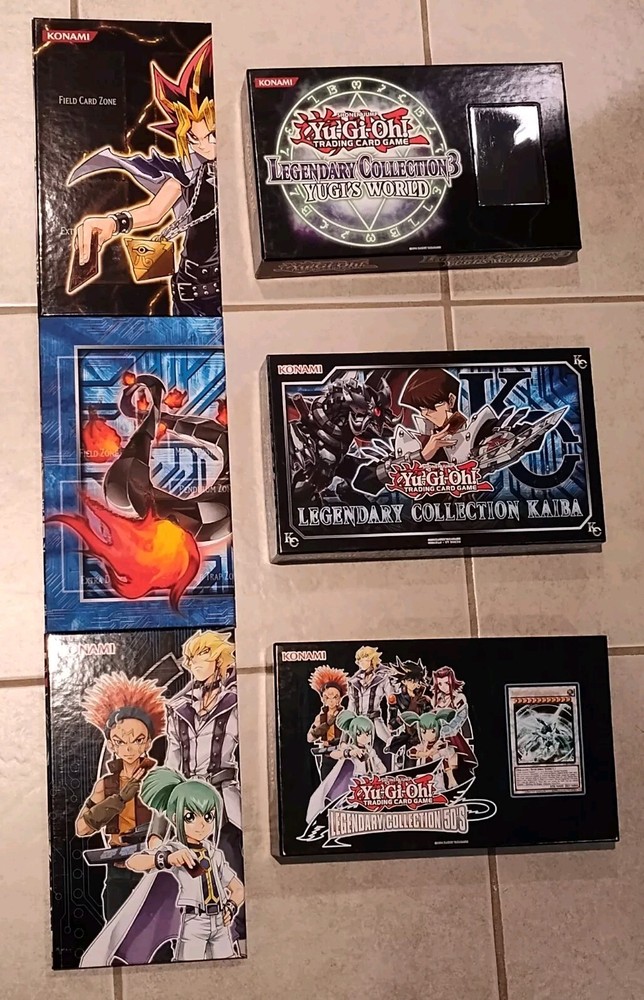 Available for purchase are three different legendary collection box releases and gameboards. Legendary Collection 3 Yugi's World (1st Edition), Legendary Collection 5D's (1st Edition) and Legendary Collection Kaiba (1st Edition). There are no cards included with this listing, just the storage boxes and gameboards. These are in great shape just pulled out of storage. I do combine shipping on multiple purchases.
