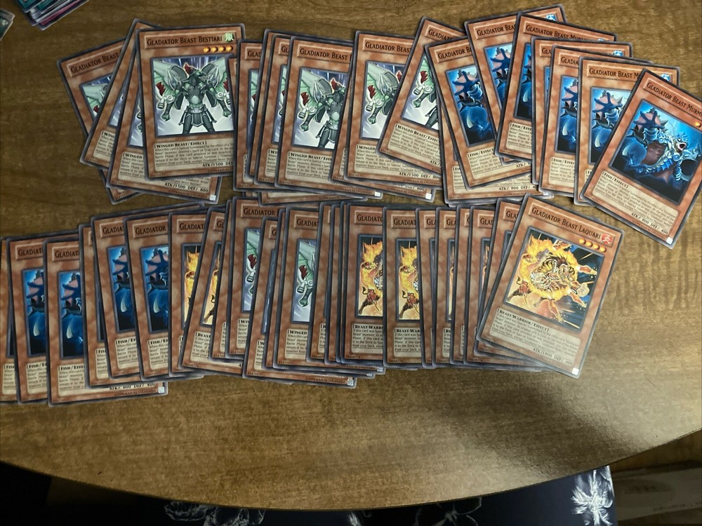 This lot includes a variety of rare cards from the Yu-Gi-Oh! TCG, all the way from the 5D's era to the XYZ and Gladiator Beast stack gladiator beast laquari, bestiari, murmillo. Abyss soldier . Each card is carefully curated to provide a unique and valuable addition to any collection. The cards are in English and manufactured by Konami, ensuring high quality and authenticity. The lot specifically includes Gladiator Beast cards, which are highly sought after by collectors and players alike. These cards are all in Japanese size and come from a variety of sets and eras. Don't miss your chance to add these rare cards to your collection and take your Yu-Gi-Oh! game to the next level. I cover shipping cost