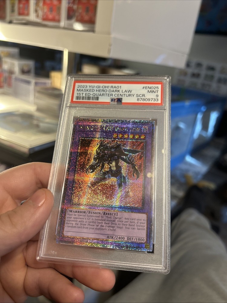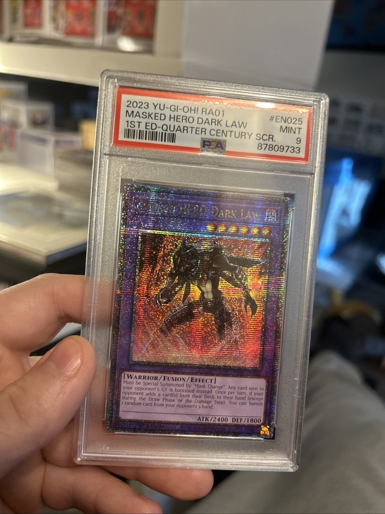 Yugioh Masked HERO Dark Law QCR RA01 Quarter Century - Yugioh GX Anime PSA 9. Condition is Graded. Shipped with USPS Ground Advantage....