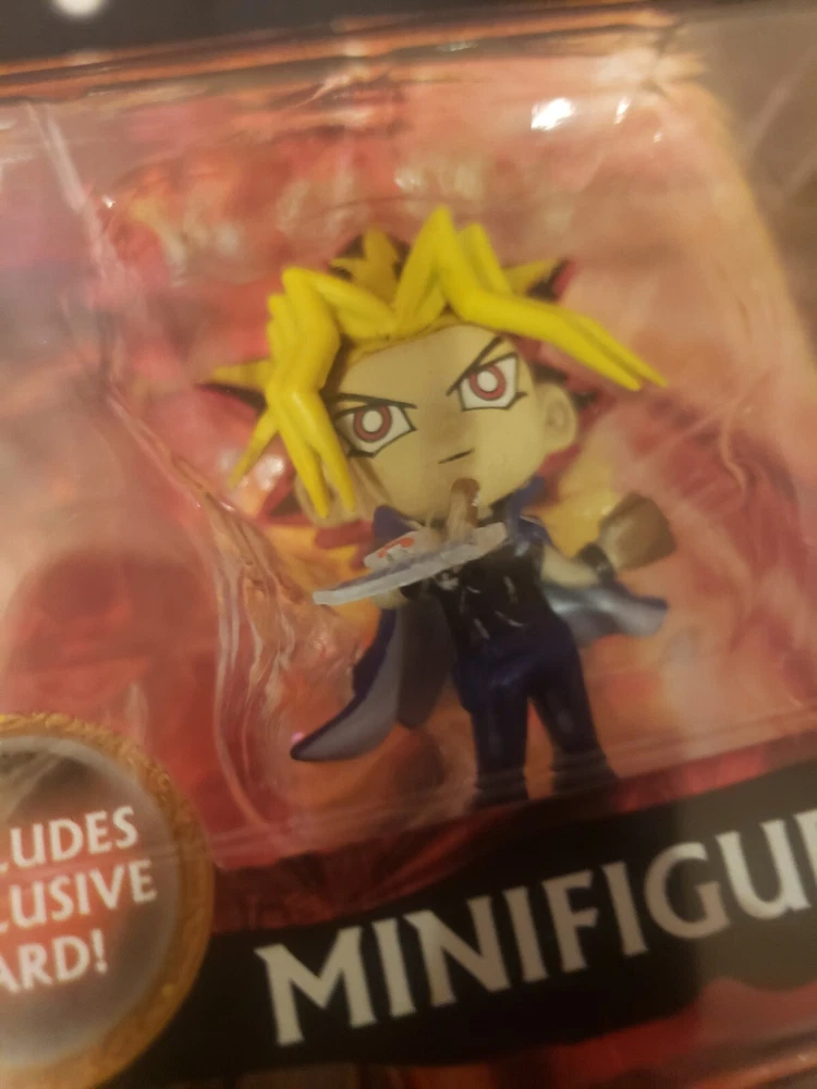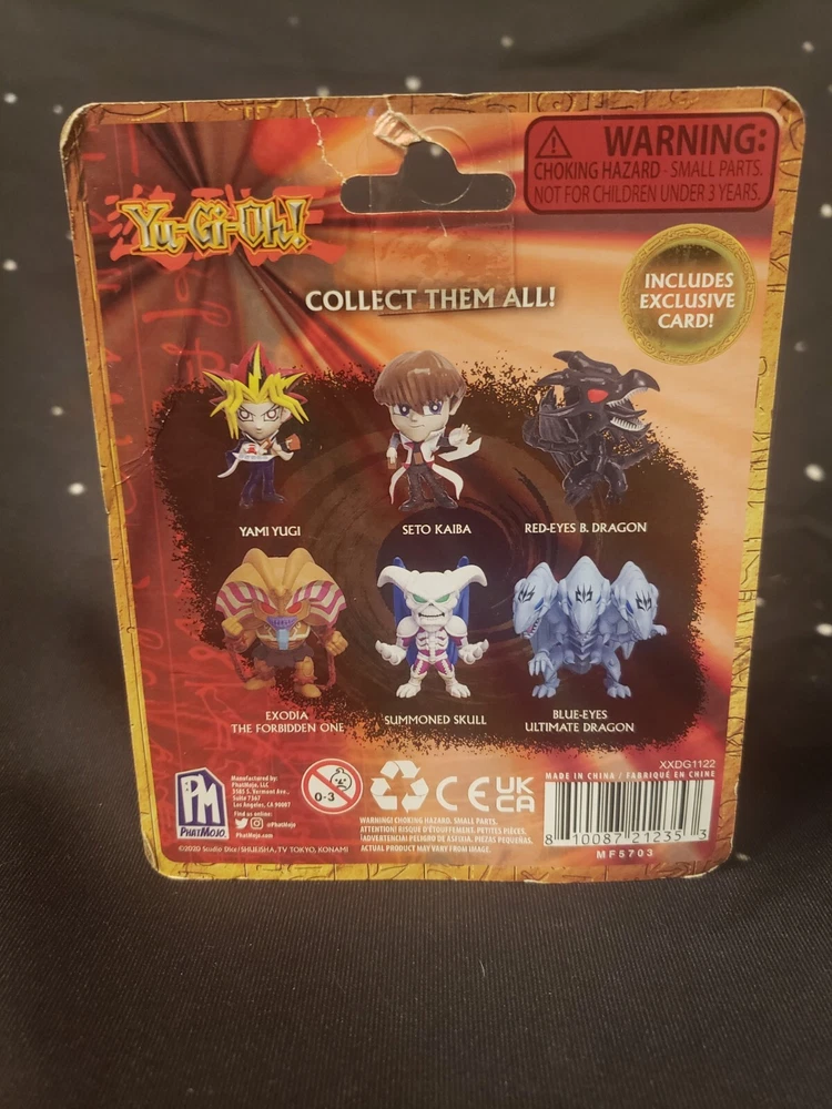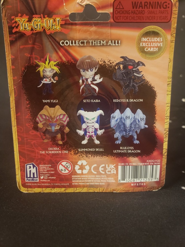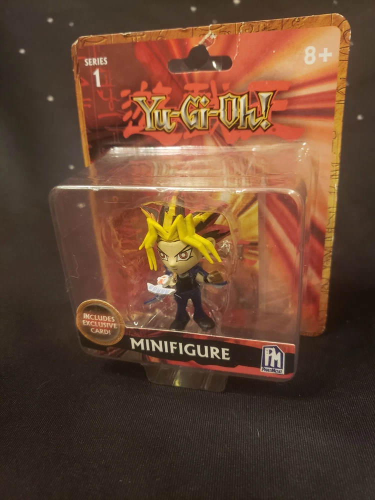 This is a brand new Yu-Gi-Oh! Yami Yugi figurine from the 2020 Phat Mojo Series 1, still in its original unopened packaging. This mini-figure stands 1.5" tall and is made of durable plastic material. It comes with a card featuring the character, and is an original licensed reproduction. This item is perfect for fans of the Yu-Gi-Oh! franchise and the animated series. The multicolor figurine is part of the anime and manga theme, and is a great addition to any action figure collection. Minor damage to the top of the box see photos (Hole that it hangs from has tearing so if your looking for a cherry display model keep that in mind.