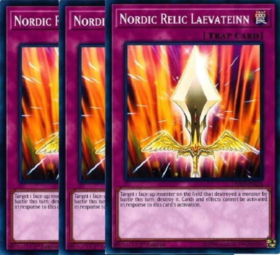 Nordic Relic Laevateinn x 3 1st Edition The cards are in NM condition. Cards will be placed in a top sleeve and loader for security. Also will include a free Holographic card which can be Super, Ultra, Secret, etc! Card Information LEHD-ENB26 - 1st Edition Legendary Hero Decks Shipping Information Free Shipping to US only. Will not ship Internationally at this time. Cards will be mailed out first class with tracking information. Return Policy No returns allowed on this auction.
