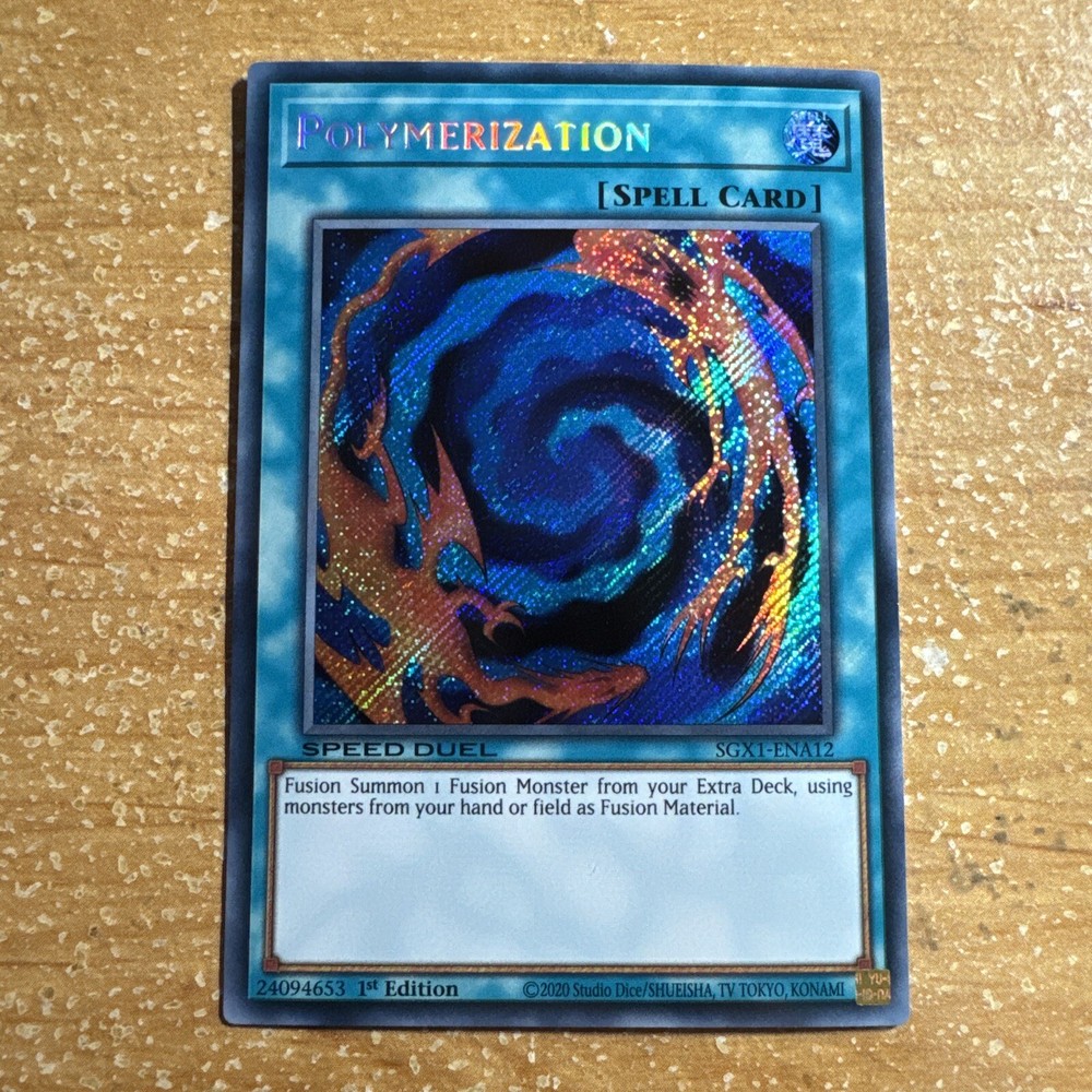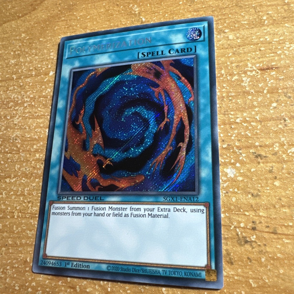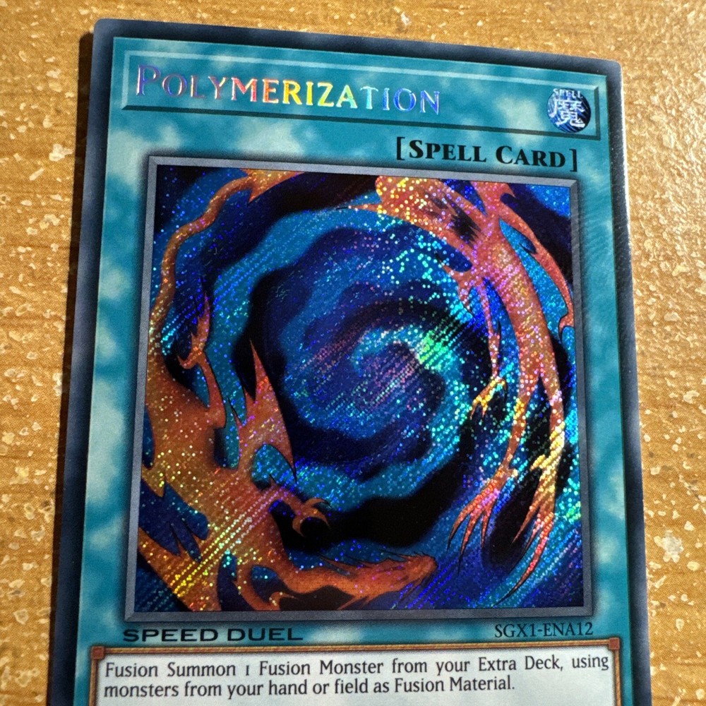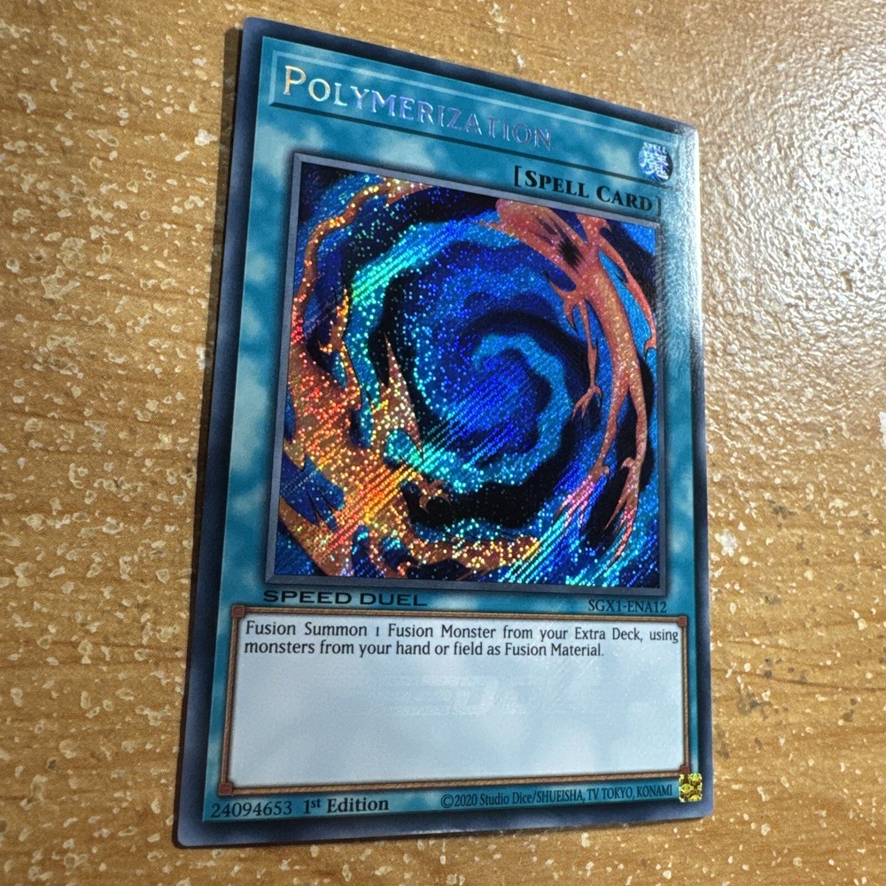 🔥 Yugioh POLYMERIZATION SGX1-ENA12 1ST ED SPEED DUEL HOLOFOIL SECRET RARE NM This item will be sent in a plastic sleeve/deck protector sleeve and in a toploader for maximum protection. Shipping is FREE! I usually ship out the next business day. Payment is due immediately. The faster the payment the faster i'll ship out. Questions or comments?? Feel free to contact me. I'll get back to you within 24 hours. Check out my eBay store for more Yugioh items!