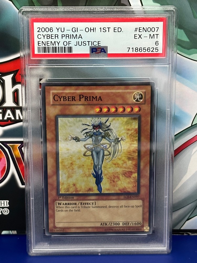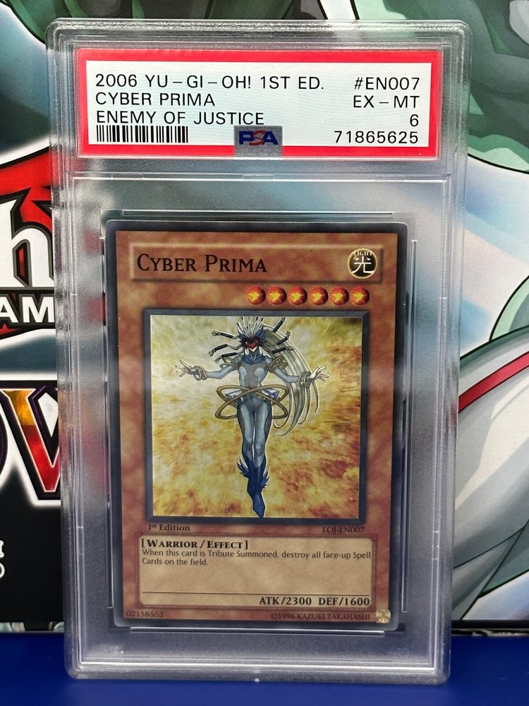 This Yu-Gi-Oh! TCG Cyber Prima card is a rare find for any collectible card game enthusiast. It features a first edition print from 2006 and has been graded a PSA 6. This card is a must-have addition to any CCG individual cards collection and is sure to stand out among your other toys and hobbies. Don't miss out on the opportunity to own this gem. Ships in protective packaging in box for damage free delivery. Thanks for viewing my listing.