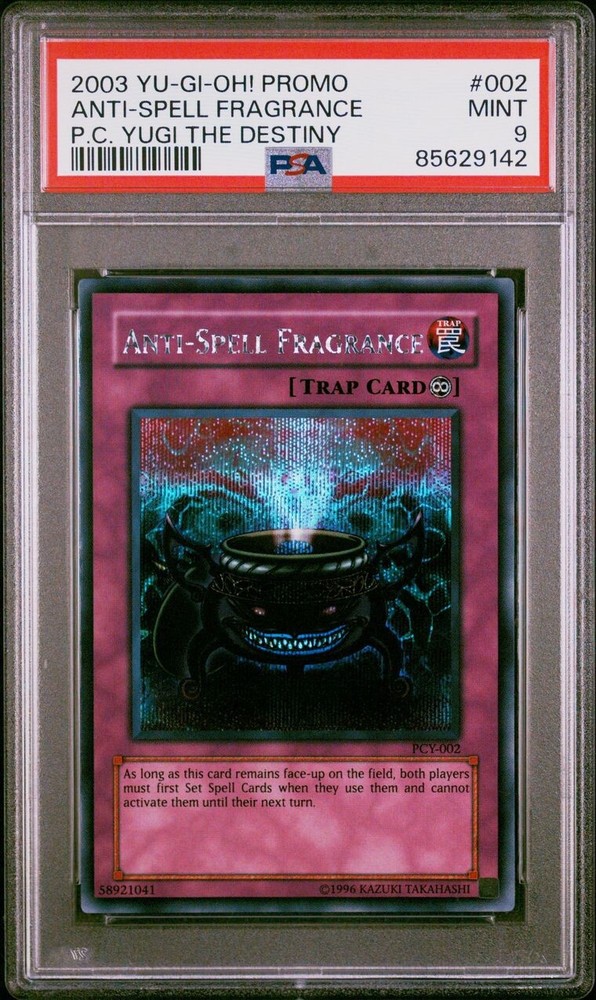 Yugioh! PSA 9 2003 Anti-Spell Fragrance PCY-002 Secret Rare. Condition is Graded. Shipped with USPS Ground Advantage.