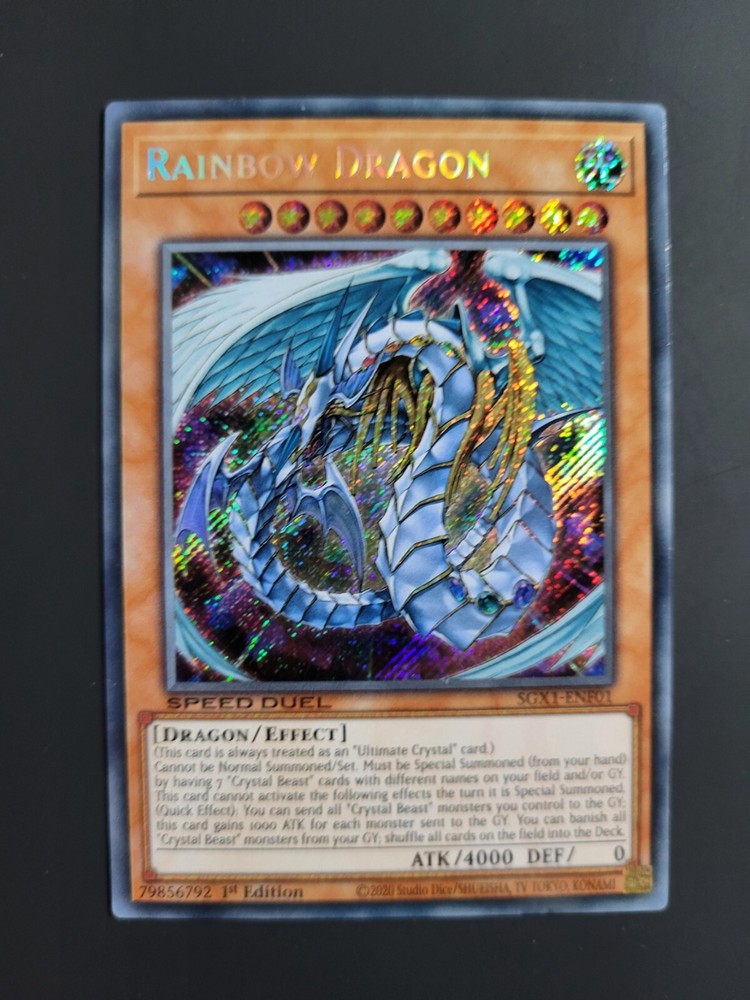 Rainbow Dragon - Speed Duel GX: Duel Academy Box DESCRIPTION You are looking at a near mint condition (Speed Duel GX: Duel Academy Box) Rainbow Dragon card PAYMENT Payment will be through either a Debit card or Paypal SHIPPING Free Tracking Number! Items will be shipped as soon as clearance of payment has been received. We normally ship within the day depending on what time your order comes in. Otherwise, we ship the following day. Weekends are included Your item will be safely and securely packaged. RETURN POLICY No returns unless damaged in shipping, send picture as proof
