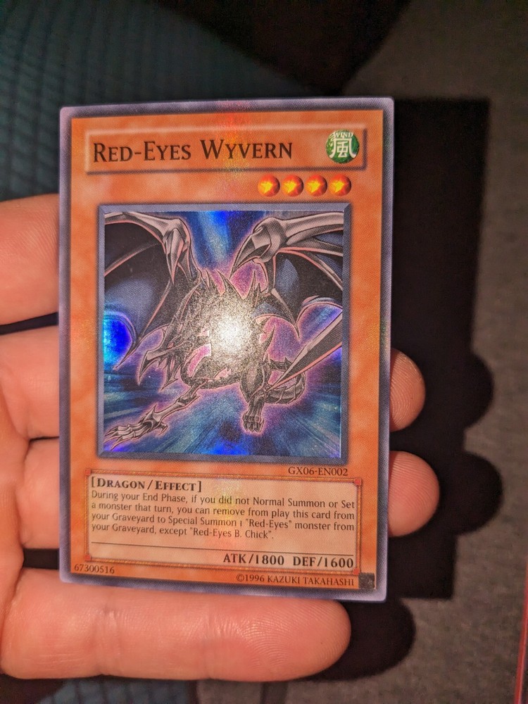 This stunning 2006 Red-Eyes Wyvern GX06-EN002 Super Rare Promo card is a must-have for any Yu-Gi-Oh! TCG collector. Featuring the powerful Creature/Monster Type of Angel and the Character of Aayla Secura, this 1st Edition card is in near mint or better condition and has been autographed by 5ban Graphics. It also comes with autograph authentication from Beckett Authentication Services (BAS). Made of aluminum and with a foil finish, this Japanese card with English language is a true vintage piece manufactured in 1990. It has a rarity of 10000 Secret Rare and belongs to the Speciality of BREAK. The card is ideal for fans of the game and those who love to collect rare items.