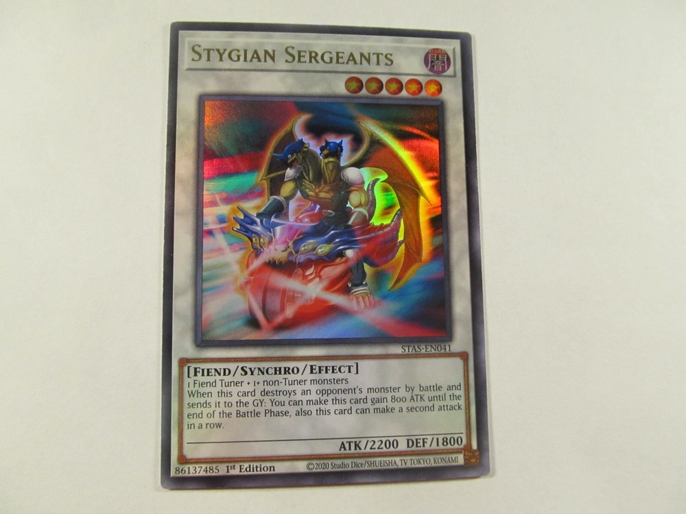 for sale is a stygian sergeants 1st edition holo yu gi oh card # staseno41