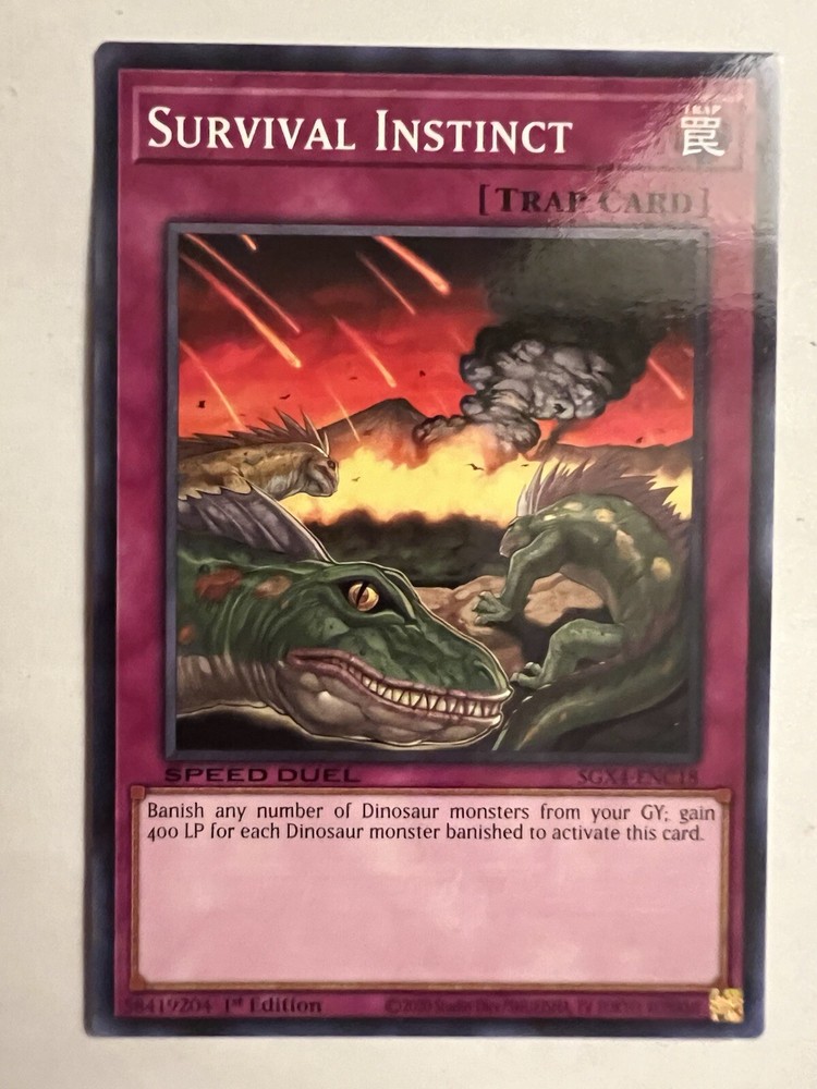 This Yu-Gi-Oh! TCG card is a must-have for any collector or player. The Survival Instinct card, with its Japanese card size and English language, is a common rarity from the Speed Duel GX: Midterm Destruction set. It is a trap card with a card number of SGX4-ENC18 and a regular finish. The card is made of high-quality card stock material and is manufactured by Konami in the United States. It is suitable for players aged 6 and above and is a part of the Speed Duel Starter Deck. This card is a great addition to any collection or deck and is sure to provide a competitive edge in any game.