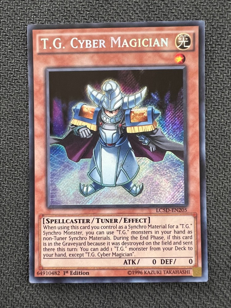Description: You are purchasing Yugioh T.G. Cyber Magician 1st Edition Secret Rare LC5D-EN205 NM. Condition: Used, near mint. Please review photos before buying. Card comes as shown. Payment: Payment is expected within 3 days of your purchase date. We accept all forms of payments. All sales are final, no exceptions. Shipping and Handling: Buyer pays for shipping. Card will be shipped via eBay standard mail within 3 business days from date of purchase that includes tracking. The card will be sent in a card sleeve and plastic top loader.