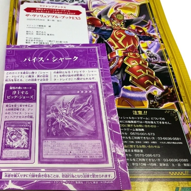 eBay Product Description Store Sanrio Pokemon Yu-Gi-Oh! Books Toy Other 商品説明 Description Product Name: Yu-Gi-Oh! Official Card Catalog The Valuable Book EX5 (Japanese Ver.) Condition: Unused; both book and promo cards are in excellent condition Format: B5 size / 176 pages Includes full coverage of OCG items released between March 2024 and March 2025 Features detailed explanations of themes from core & concept packs Includes sample decks and the latest Limit Regulation changes Also includes newly revealed card stories in full volume! Bonus Promo Cards (2 cards, sealed): Dark Knight Gaia Vice Shark 📦 Shipping Shipped with a tracking number for your convenience. We only ship to the address registered on eBay. Shipping is available Monday through Friday (no shipping on weekends). We do not undervalue the item price or mark it as a "gift" on customs forms. 🌎 About Importer’s Obligation Import duties, taxes, and charges are not included in the item price or shipping cost. Customs fees are the buyer's responsibility. Please check with your country’s customs office to determine these additional costs before bidding or buying. 🔄 Return & Exchange Policy Returns and exchanges are accepted within 30 days after receiving the item. Please feel free to contact us.
