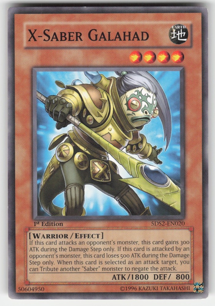 The Yugioh X-Saber Galahad #5DS2-EN020 card is a collectible card game item from the '5D's Starter Deck 2009' set released by Yugioh. This 1st Edition card features the character X-Saber Galahad and is a sought-after collectible for fans of the YUGIOH game. Perfect for collectors or players looking to enhance their card collection, this item is a valuable addition to any Yugioh enthusiast's collection.