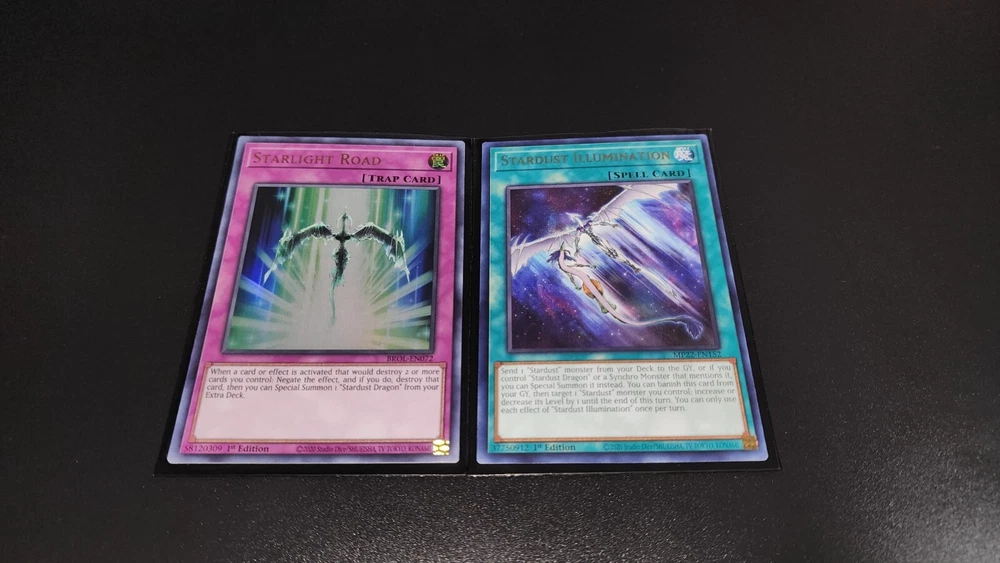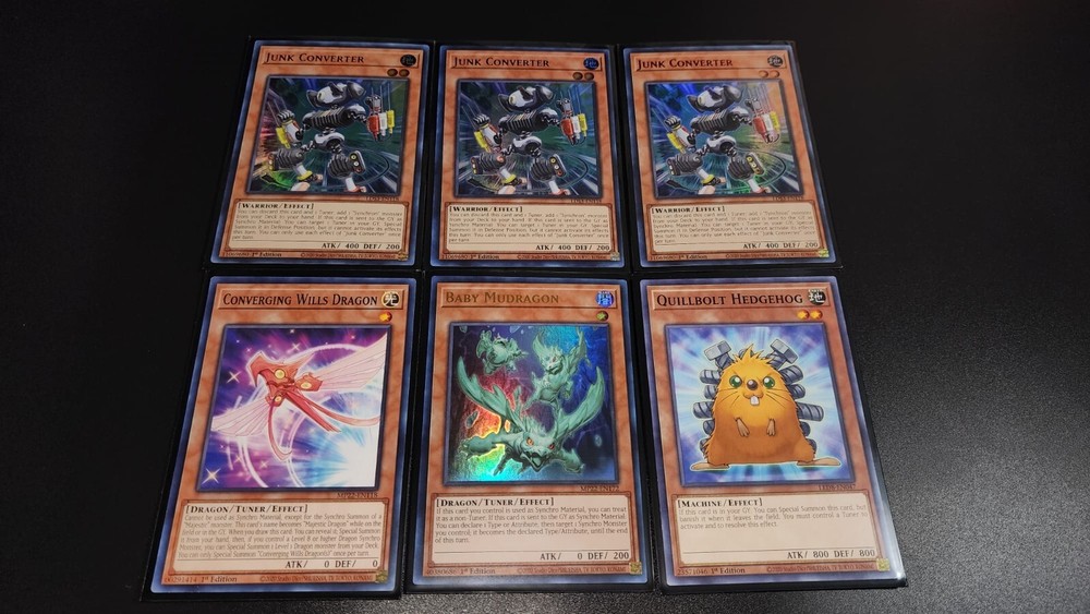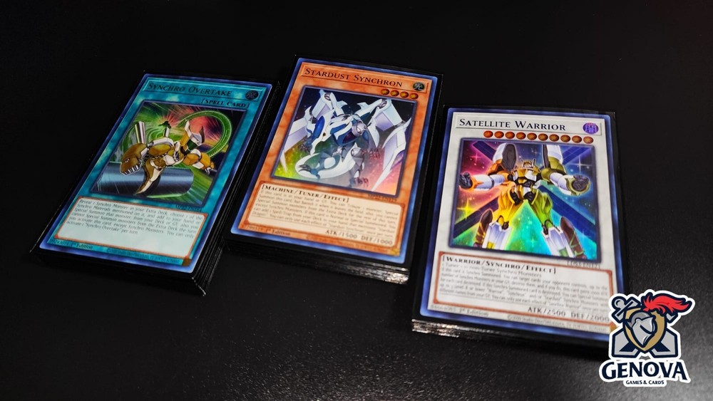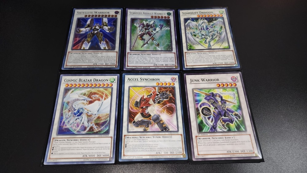 YuGiOh Yusei Fudo Junk Synchron deck collection set overtake, stardust, jet MONSTER 3x Stardust Synchron (ultra rare) 3x Quickdraw Synchron (Blue Red or Gold Ultra rare) 3x Junk Converter (Blue Red Or Gold Ultra rare) 3x Satellite Synchron 1x Junk Synchron 1x Stardust Trail (ultra rare) 1x Baby Mudragon (ultra rare) 1x Jet Synchron 1x Quillbolt Hedgehog SPELL 3x Synchro Overtake (ultra rare) 3x Synchro chase 3x Tuning (Red Blue or gold Ultra rare) 1x Stardust Illumination TRAP 1x Starlight Road (ultra rare) EXTRA 1x Satellite Warrior (Blue, red or gold ultra rare) 1x Stardust Assault warrior (ultra rare) 1x Stardust Dragon (rare) 1x Junk Warrior 1x Accel Synchron 1x Cosmic Blazar Dragon You will receive every card that pictures show! bid with confidence. **Sleeves not Included**